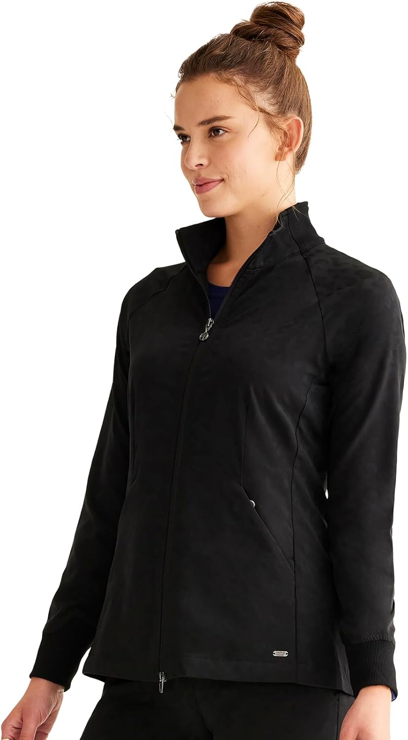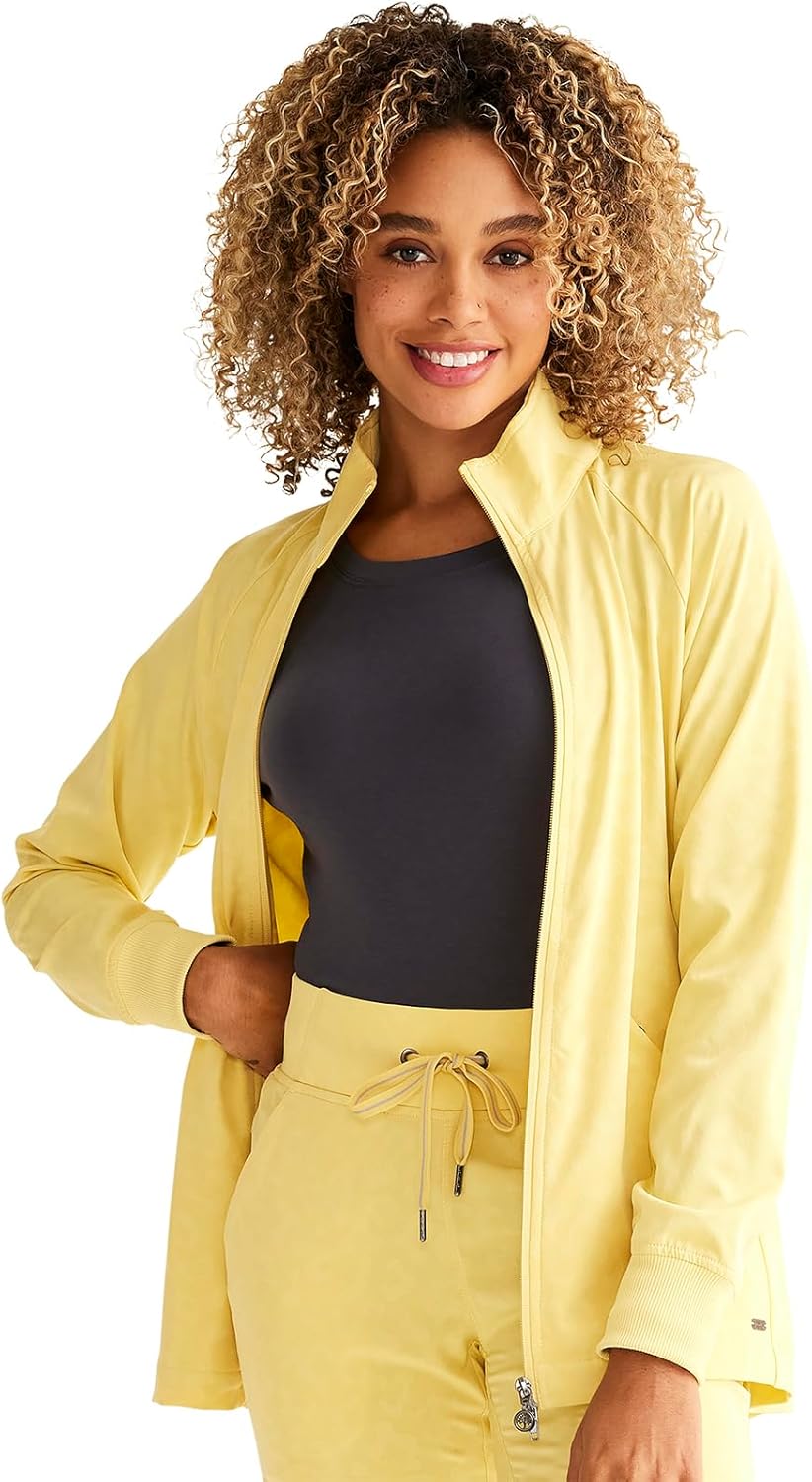 This Modern fit zip front jacket has a 3/4 rib-knit stand-up collar. There are front and back pricess seams and darts, plus two front in-seam zip pockets. Other features include raglan sleeves with rib-knit cuffs and a back waist seem with a kick-pleat. Center back length: 26".