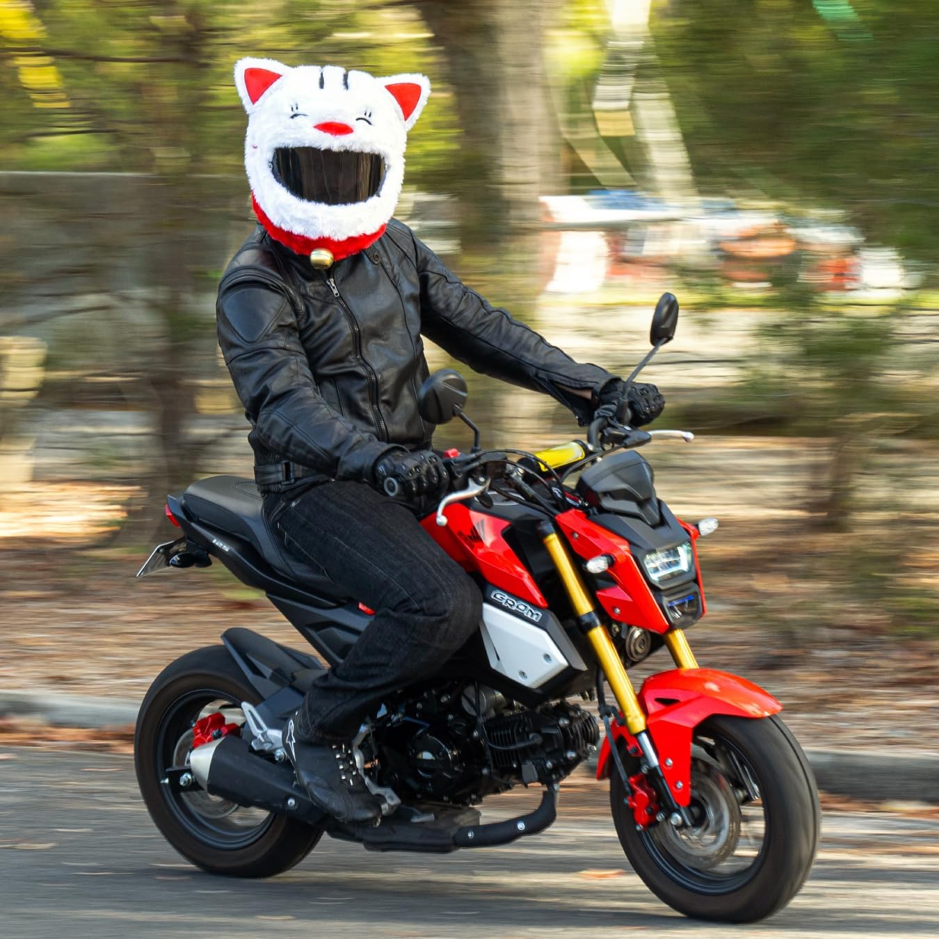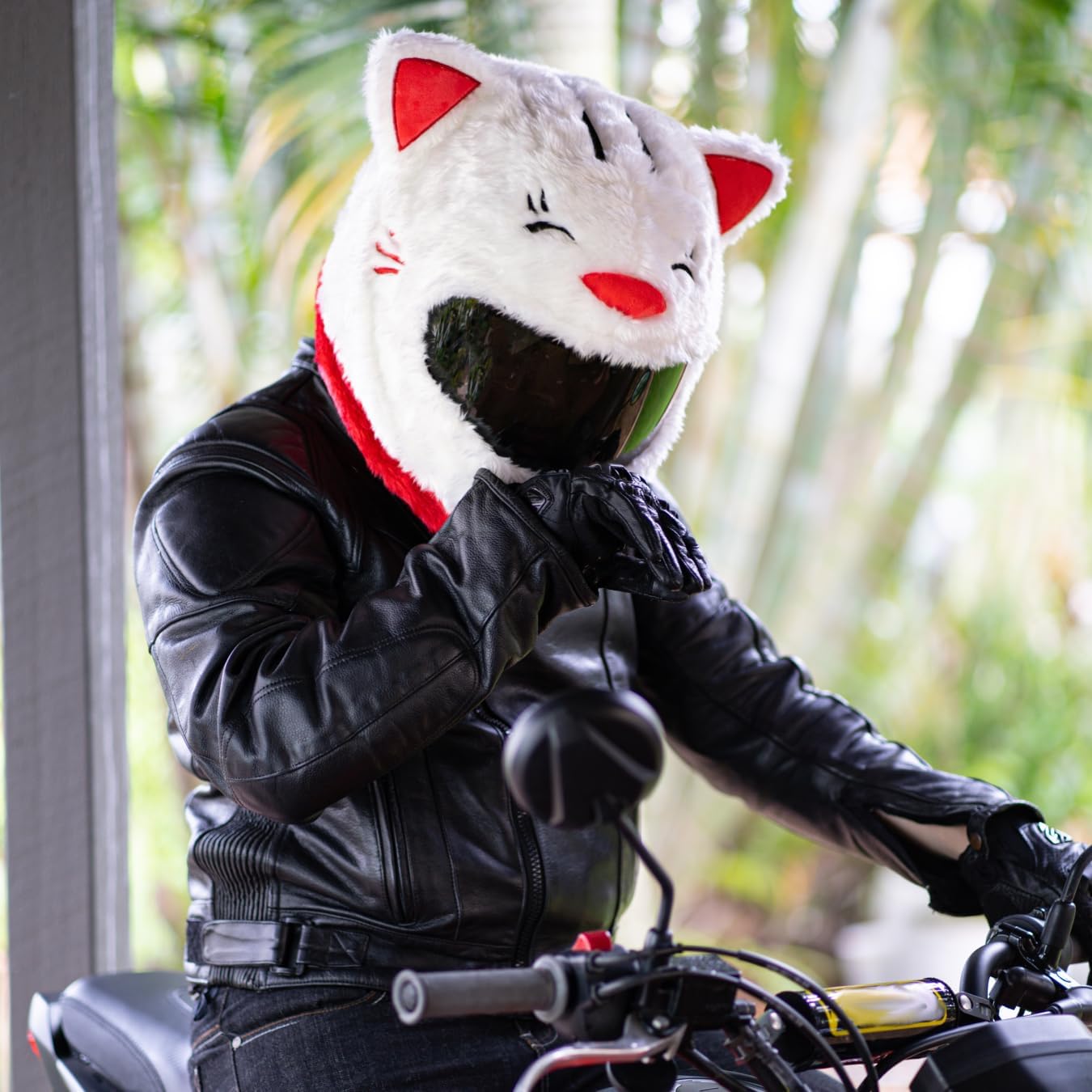 Why You Need This Helmet Cover?Brings Smiles To Faces Children will laugh, heads will turn and you'll make everyone a little happier when you rider past wearing this lucky cat helmet cover. Everywhere you ride people will laugh, wave, give you thumbs up and take pictures. Don't be surprised if you find yourself staring on multiple social media pages after going for a ride wearing this fun helmet cover.Brightens Dull Commutes Let's be honest, we all have to do some rides that are a little less interesting (slow, high-traffic commutes come to mind). Chuck one of these removable helmet covers on before heading out and we promise it'll make any ride loads of fun!Helps Be Seen It's no secret drivers often don't see us when we're out on our motorcycles. With one of these lucky cat helmet covers you'll stand out and have a much higher chance of being seen by others on the road. Fantastic benefit for any rider that doesn't like being hit by cars.One Size Fits All That's right, this helmet cover comes in just one size that fits almost all helmets. This means if you ever change helmets, you can use your helmet cover with your new one. It also means you can lend it to your friend and it should slip nicely onto their helmet.Easy To Install This crazy helmet cover is so easy to install even a monkey could do it (okay, we haven't tested this...if anyone knows a motorcycle riding monkey, please let us know). Simply slip it onto your helmet, adjust the cover so the mouth aligns with your visor and your vision is maximised, then pull it down tight.Keeps Helmet Clean This funny helmet cover will scare away dust so you'll never have to clean your bike/gear again! Alright, that's not entirely true but it will stop dust and from sticking to your beautiful helmet.