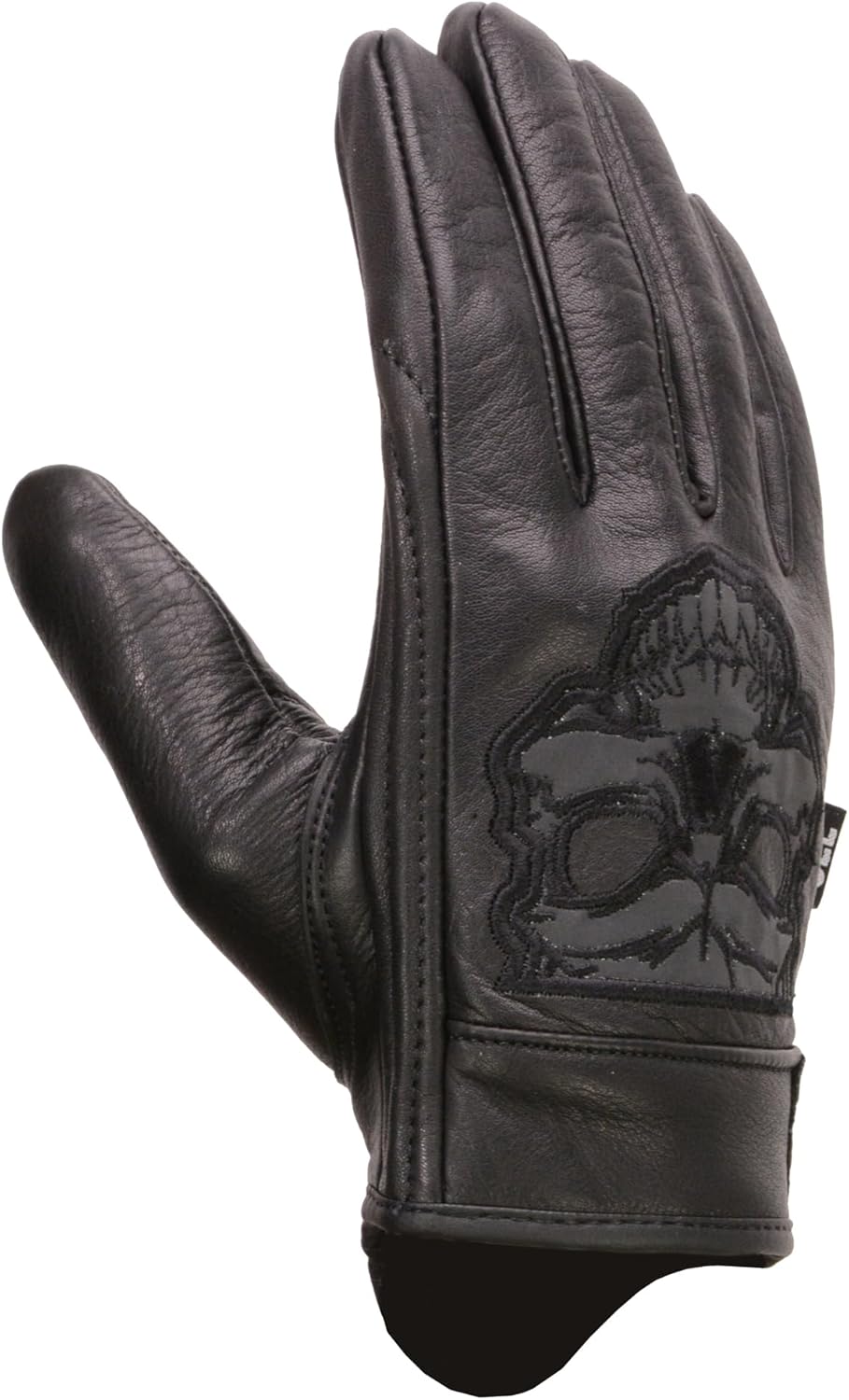 Milwaukee Men's Black Leather ‘Reflective Skull’ Motorcycle Hand Gloves W/Gel Padded Palm