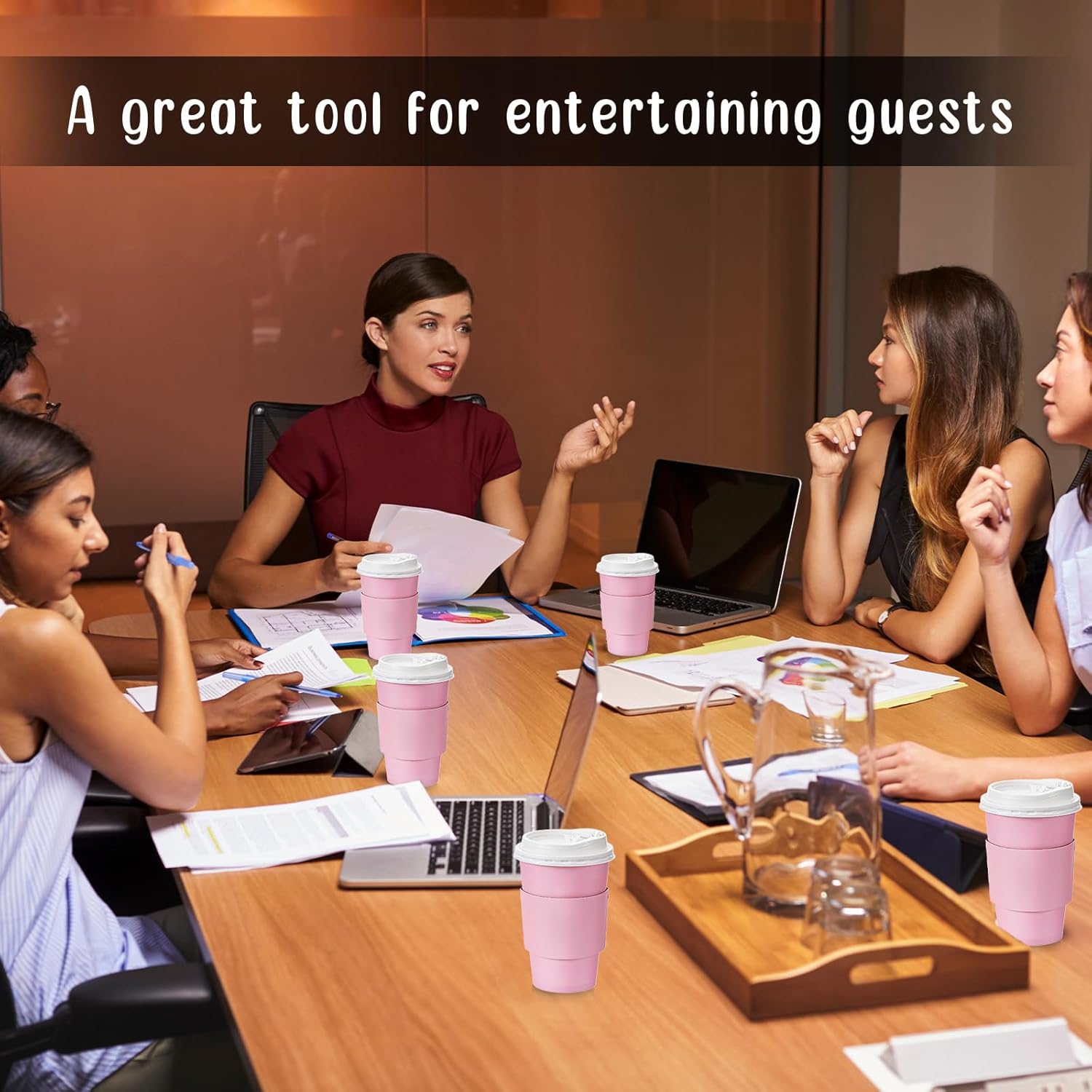 Features: These travel cups with lids are good for setting up a coffee bar at home, hosting tea parties, or serving hot chocolate. They add a touch of elegance to events and make cleanup a breeze. Our disposable coffee cup set is also an ideal gift for coffee enthusiasts and tea lovers. Whether it's for birthdays, housewarmings, or other special occasions, these cups are good choices. Specifications: Material of cups: paper and polyethylene coated interiorMaterial of lids: PPMaterial of sleeves: paperColor: pink and whiteSize of cups: approx. 5.24 x 3.54 inches/ 13.3 x 9 cmSize of lids: approx. 3.54 inches/ 9 cm in diameterCapacity of cups: 16 ozPackage includes: 100 Pcs coffee cups100 Pcs lids100 Pcs sleeves Notes: Manual measurement, please allow slight errors on size. The color may exist a slight difference due to different screen displays.