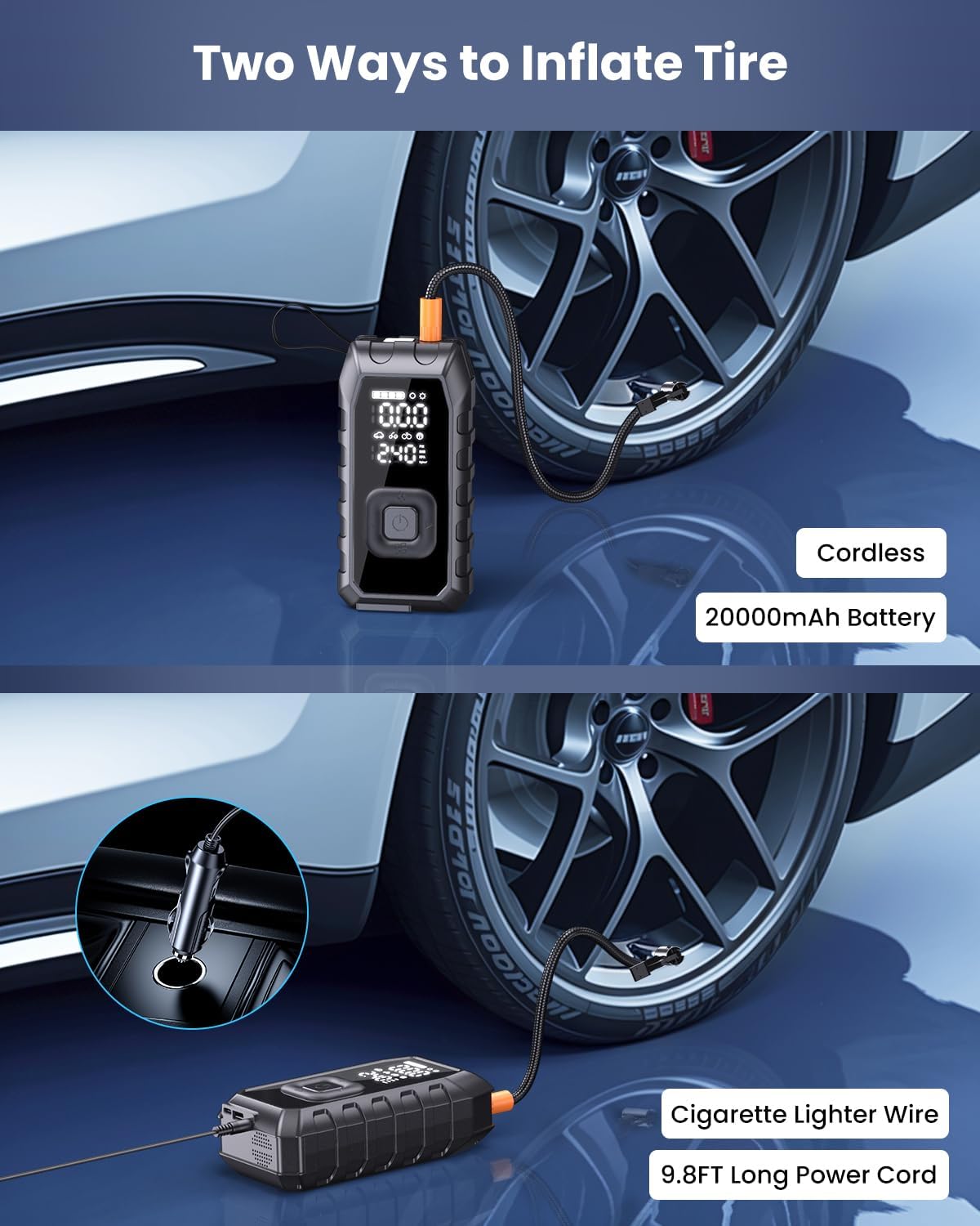 | Included Components | Charging Cable, Cigarette Lighter Wire, Presta Valve, Needle Connector, General Connector, Storage Box, Tire inflator |