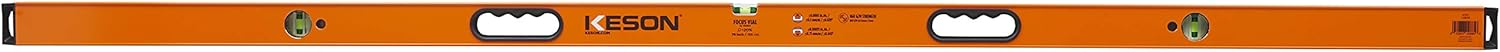 The Keson 78" Box beam level offers a strong aluminum profile (860 g/m strength) with 2 Shock-absorbing end caps to protect the level in case of a fall or shock. End caps are equipped with an anti-slip surface, allowing for convenient positioning and a secure grip to the measuring surface. The break-resistant acrylic block focus vial with 20% magnification also offer a luminous backing for low light conditions. The vial fluid is not affected by electricity and will not fade under sunlight. Accuracy of the level: ≤0.0005 in./In. (0.5 mm/m). 2 ergonomically designed handholds provide a comfortable grip. Made in Austria.