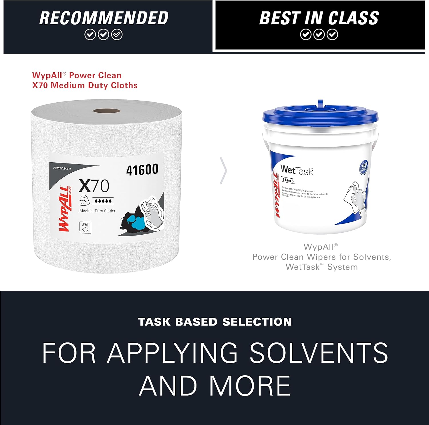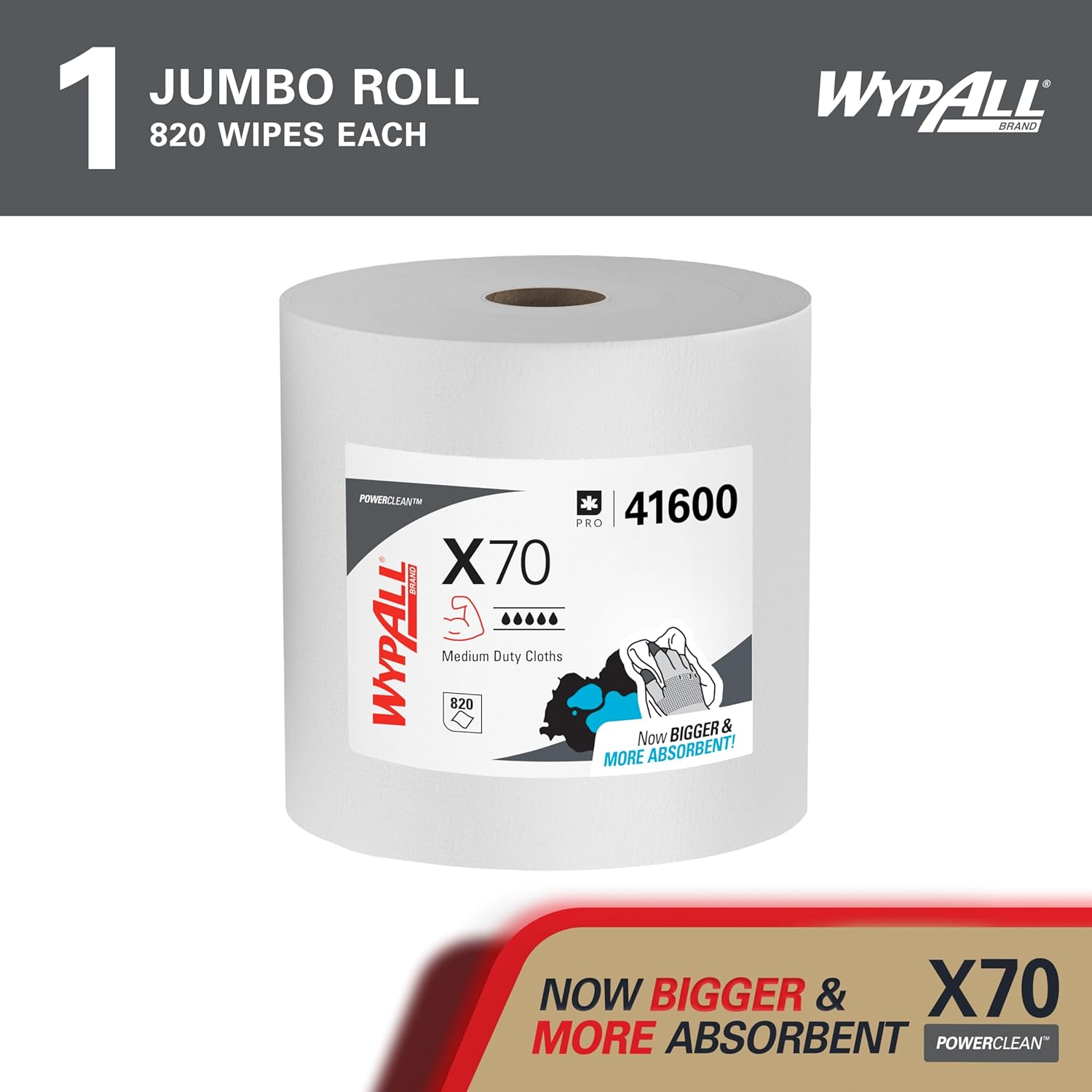 Product Description WypAll is the number one brand of disposable wipes in the US and Canada. Maximize performance while minimizing time, effort and product waste. If you’ve been using either laundered shop towels or textile shop rags, you can trust WypAll Power Clean X70 Medium Duty Cloths. They are heavy duty cloths, with high-tech HydroKnit fast-absorbing material. WypAll Power Clean X70 Medium Duty Cloths premium industrial cloths are made of soft pulp fibers, bonded to a polypropylene base sheet for absorbency and tear resistance, making them suitable for removing dirt, oil, grime and solvents in a variety of industrial and manufacturing industries. Plus, they come in a convenient Pop-Up Box (dispenses one at a time, as an alternative to a box of rags) and are so sturdy that they can often be used more than once (once you’ve used them a few times, they’re disposable). They are designed to clean surfaces and tools, making them a must-have for the HVAC, automotive, manufacturing and industrial industries. When you’re running a business, it pays to use the very best supplies and WypAll fits the bill. Manufacturer Contact Information 800-241-3146