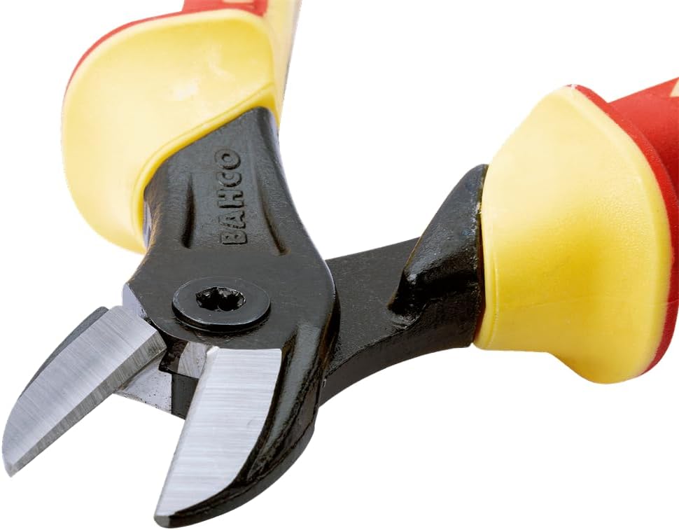 Extra thick grip handles with thumb stops, provides protection up to 1000 volts. Edges near the joint are shaped for cutting hard materials such as thick single wires. Towards the tip they are adapted for soft materials and for stripping wires of thinner dimensions. Jaws are made from specially hardened steel so they stay sharp longer