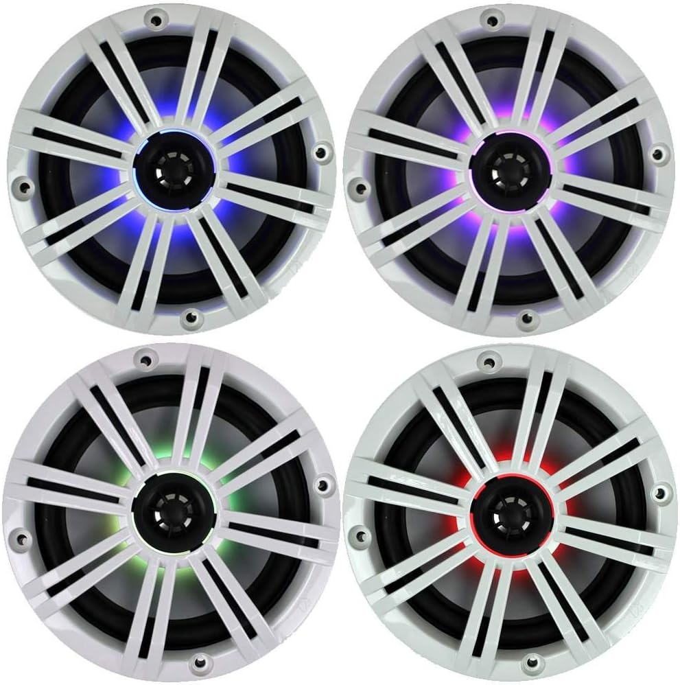 6.5" LED Speakers:65 Watt RMS PowerMulticolor LED Lighting CapablitiesMoisture-draining SystemPolypropylene midwooferRubber surroundSealed Motor Structure3/4" titanium dome tweeter4 ohms impedanceSensitivity: 90dBFrequency Response: 35-21,000 HzTop-mount Depth: 2-7/8"Cutout dimensions: 5-1/8"LED Remote Controller:Marine LED Remote ControllerProvides ultimate control over lightsUltra slim remote designMulti-function control of LED lightingManages 20 bright colors19 dynamic modes including adjustable brightness, fade, speed/strobe and auto saveCompatible with Kicker marine coaxial speakers and subwoofers