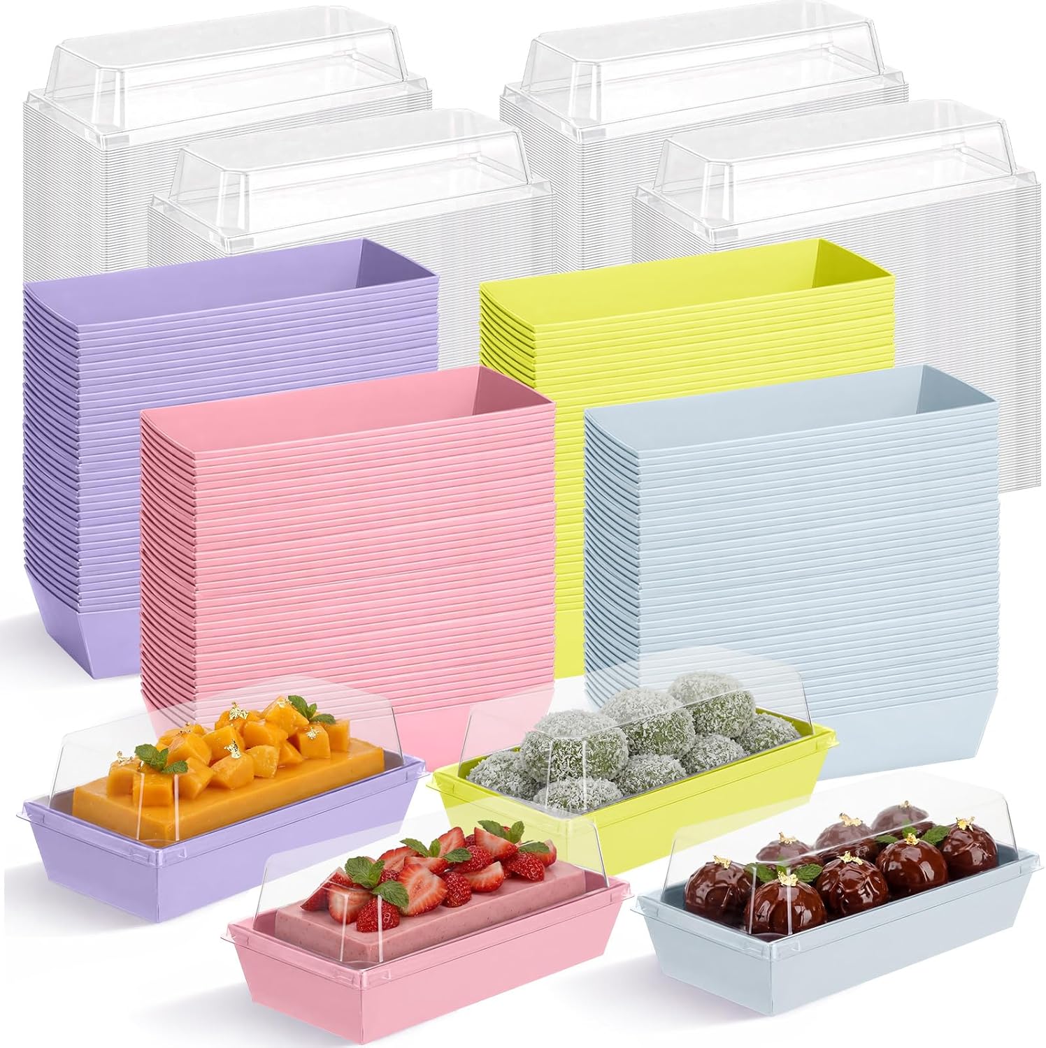 Features: Our charcuterie boxes with windows are also ideal for picnics, gift giving, and a variety of occasions. These charcuterie boxes with clear lids feature plastic clear window, which allows you to clearly see the delicious food while preventing food deformation, easy to pack and carry. Specifications: Material: cardboard, plastic Color: multicolors Size: about 5.3 x 4.7 x 2.4 inches Package includes: 200 x Charcuterie boxes with clear lids Notes: Manual measurement, please allow slight errors on size. The color may exist a slight difference due to different screen displays