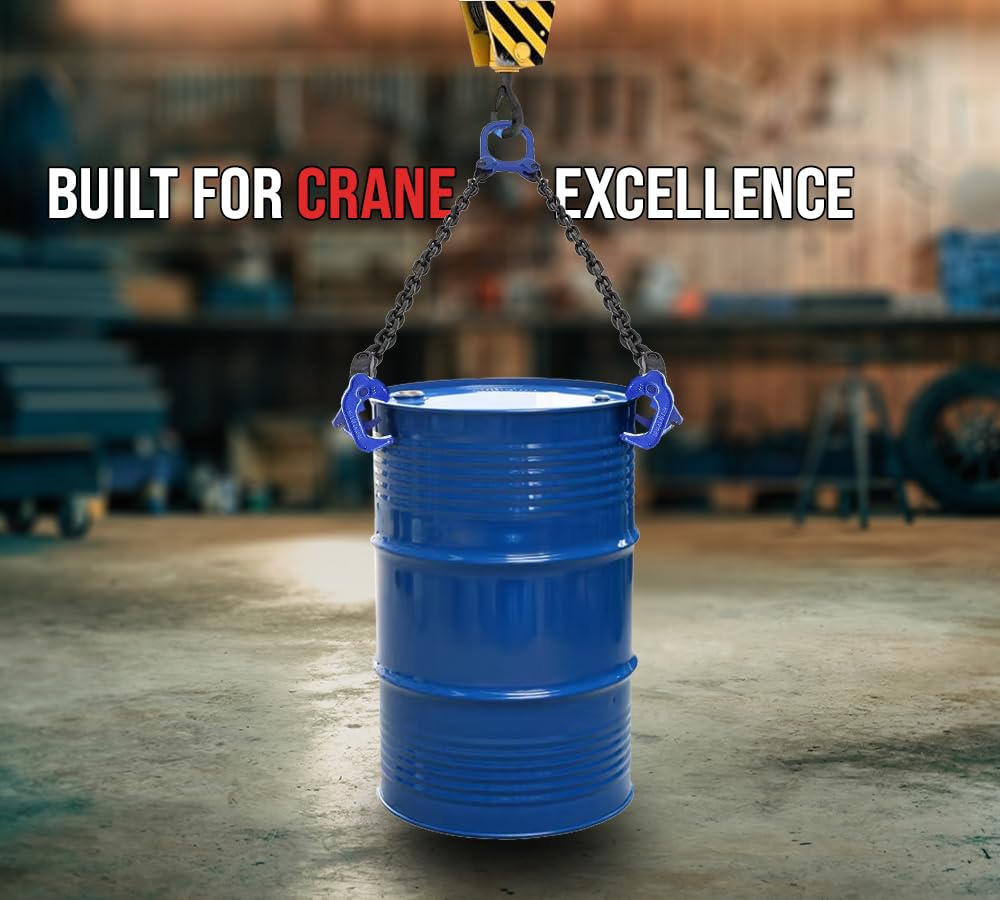 Mytee Products Chain Drum Lifter for 30 to 55 Gallon Drum Lift 2000 lbs WLL Vertical - Carbon Steel Hook w/Built-in Spring - Metal/Plastic Drum & Barrel Lifter w/Self Locking Hoist
