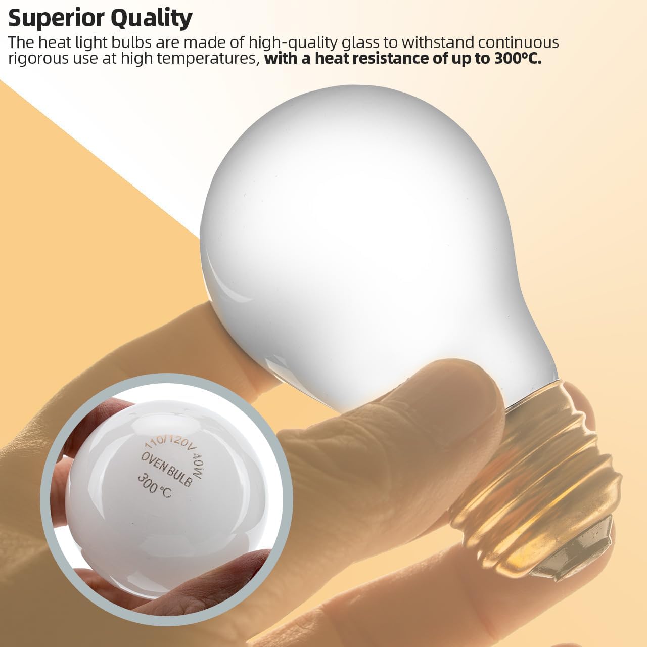 GRONGU 02.30.265.00 40 Watt Light Bulb, 120V E26 Oven Light Bulb 40W High Temp, 8 Packs Professlonal Grade Heat Lamp Bulbs Functional Voltage Tolerance 110–120V E26 Base A15 Bulb Shape 40 Watts Withstand Temperatures Up to 300°C Package Include 8 × 40-watt heatlamp light bulbs Wide range of applications The 40 watt light bulb compatible with Hatco 02.30.265 series heat lamps in all commonly searched formats. Including: For 02.30.265, 02.30.265.00, 02.30.265.08, 02.30.265.12, 02-30-265, 02 30 265, 0230265, 023026508, R02.30.265, R-02-30-265, R 02 30 265, and R0230265 — part of the full 02.30.265 replacement family. The popcorn machine light bulb fit for Hatco warming and heat-lamp equipment. Including for macho nacho, for glo-rite, for glo-ray, for flav-r-savr, for flavrfresh warming cabinets and displays. Versatile & Energy Efficient These 40-watt heat lamps emit a warm white color temperature, providing efficient and reliable lighting for heating, displaying, and serving various foods.