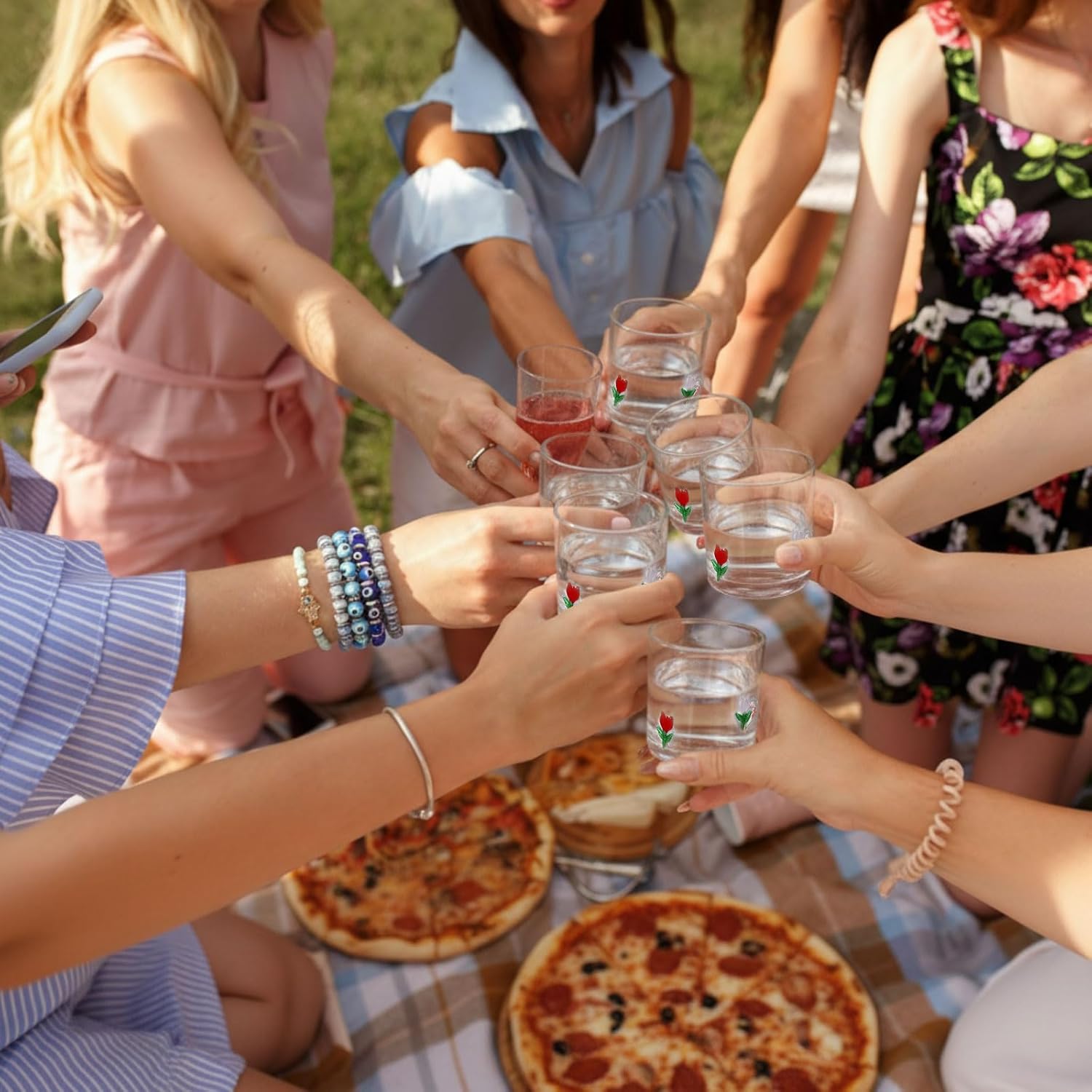 Features: Portable Design: These stemless glasses are elegant yet sturdy, reducing the risk of spills. Ideal for mixing and serving drinks at any event. Ideal Gift: These decorative juice glasses can hold a variety of drinks and are a thoughtful gift for friends and family. The creative design and practicality make it an ideal choice for birthdays, housewarmings or parties. Specifications: Material: glass Color: multicolor Size: 14 oz Package includes: 4 x Juice glasses cup Notes: Manual measurement, please allow slight errors on size. The color may exist a slight difference due to different screen displays