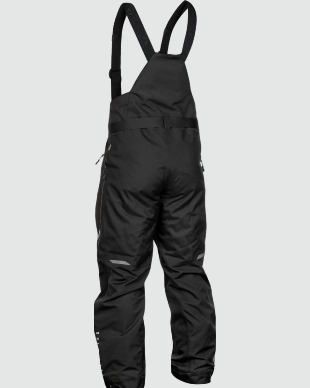 The Fly Racing Carbon Snow Bibs are designed for men who need durable, weatherproof performance for snowmobiling, skiing, snowboarding, or ice fishing. Constructed with Hydraguard Pro technology and a fully seam-sealed Cordura shell, these mens snow bibs provide windproof, waterproof, and breathable protection in harsh winter conditions. Heavy-duty reinforced knees, inner lower legs, and bottom cuffs increase abrasion resistance while 4-way stretch front panels and 2Cool Air mesh vents optimize mobility and airflow. Adjustable suspenders with sternum strap, boot gaiters with lace attachment, and a removable Fidlock magnetic belt provide a custom, secure fit. Safety features include high-visibility Innolite reflective panels, silicone grip print, and tether D-ring. Removable PE knee pads and YKK zippers enhance convenience and long-lasting durability. With an athletic fit that contours to your body, these snowmobile bibs and snow pants ensure warmth, protection, and style for all winter adventures.