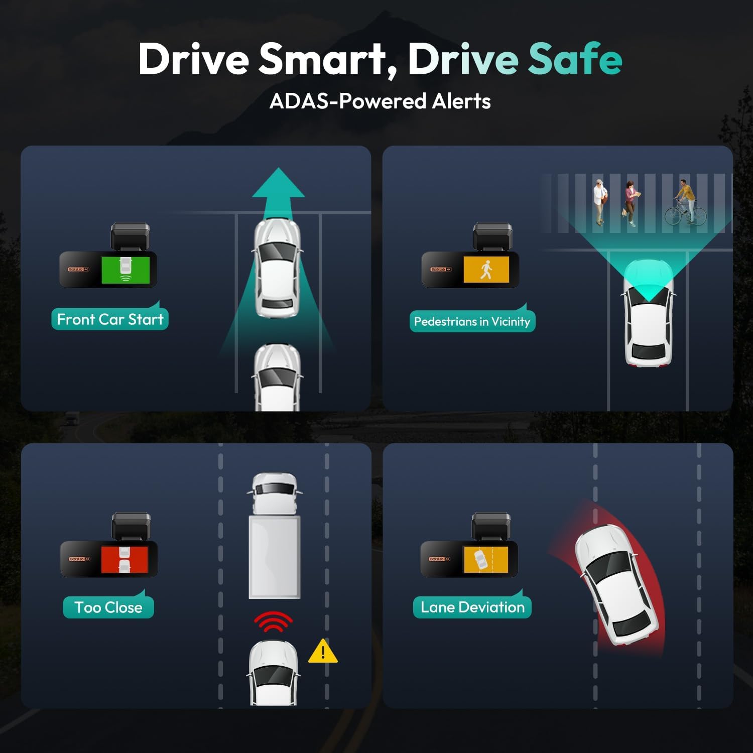 | Other Special Features of the Product | 24/7 Parking Mode with GPS Tracking, 4K+2K Dual Cam, 360° Rotatable Rear, ADAS Alerts & Driver Fatigue Reminders, Voice Control for Hands-Free Operation, WDR, Super Capacitor, 5.8GHz WiFi |