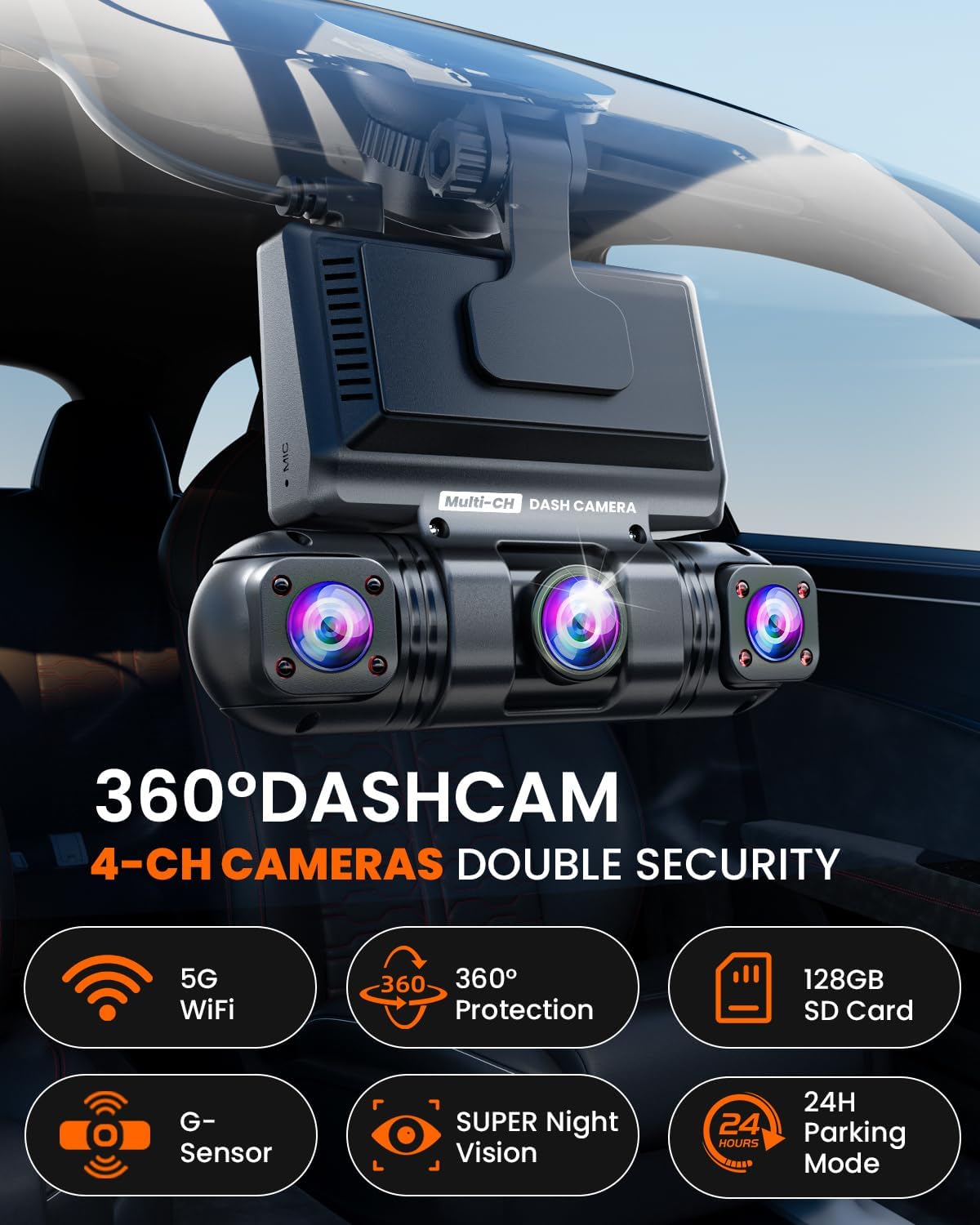 | Other Special Features of the Product | 360 Degree, App Control, 3-inch display, Loop Recording, 5G Wifi, G-Sensor, Night Verion, Parking Monitor, Audio Recording, Free128GB Memory Card |