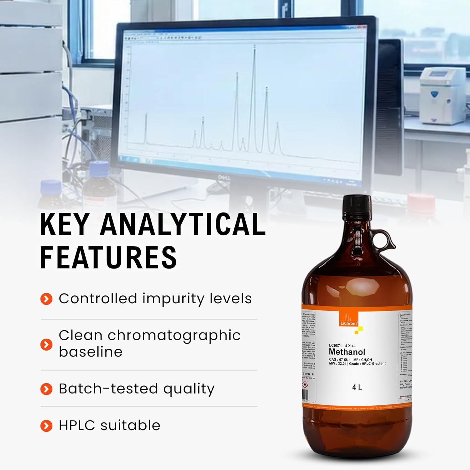 Get High Purty HPLC grade Methanol from LiChrom to get fast, reliable and reproducible results for your analysis. LiChrom series products are ideal FOR all type of Liquid Chromatography. These products are tested as per LIQUID CHROMATOGRAPHY SPECIFICATIONS. THIS PRODUCT IS INTENDED FOR LABORATORY USE ONLY. THIS PRODUCT CAN BE SHIPPED THROUGH GROUND SHIPPING ONLY.