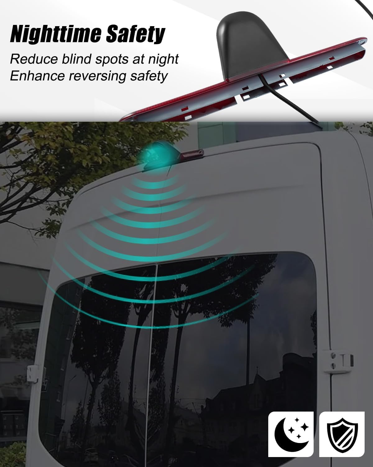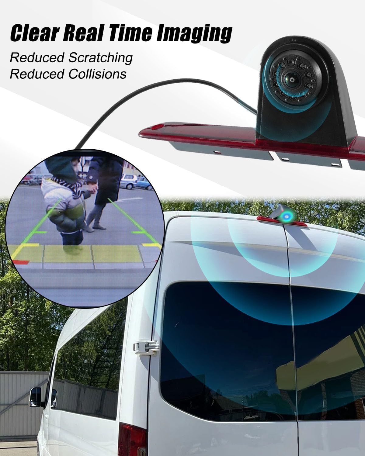 Brake Light Rearview Backup Camera Built-in 6 Infrared Night LED SensorsProduct Features:Provides real-time, clear images and safer tracking assistanceHigh-strength housing, heat-resistant and aging-resistantSix infrared lights for safe nighttime reversingComplete accessories for quick and easy installationCompatible Model:Fit for Volkswagen Crafter Van 2011-2015Fit for Mercedes Benz Sprinter 2500 2010-2015Fit for Mercedes Benz Sprinter 3500 2010-2015Fit for Mercedes Benz Sprinter 2008-2012Package Included:1 x Brake Light Reverse Camera1 x 4-pin Male to Female Video Extension Cable1 x 4-pin to RCA Cable1 x DC Cable1 x RCA Male to Male Connector1 x Fakra Z to RCA Female Plug1 x 3M Tape