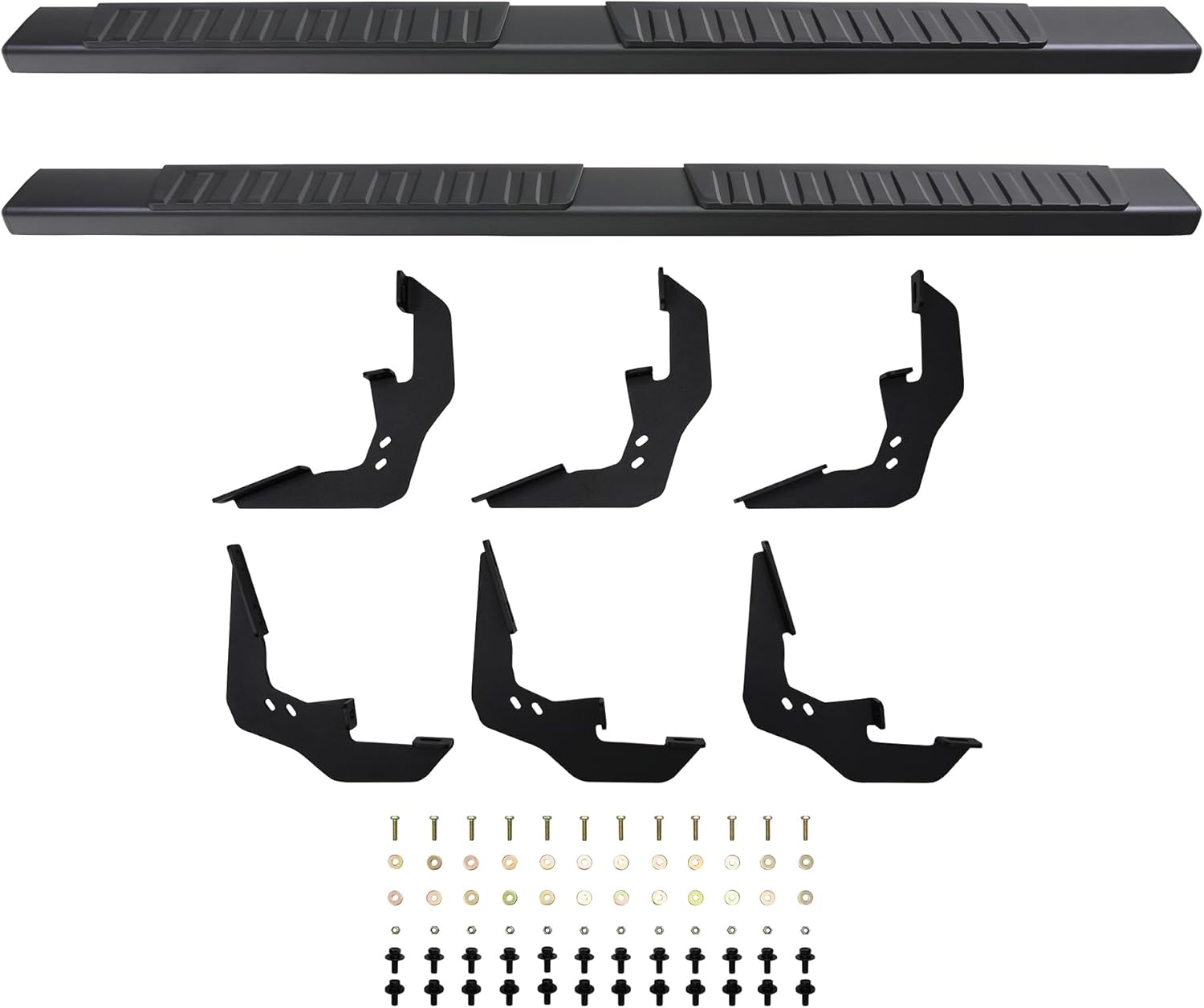 Westin R7 Boards feature oversized step pads and OE style traction grooves. R7 Boards are sold in complete kits that include: Driver and passenger-side boards vehicle specific mount kit and come with injection molded bracket covers for an extra clean look. R7 Boards are available in polished stainless steel backed by a lifetime and black powder coated aluminum backed by a 3-year .
