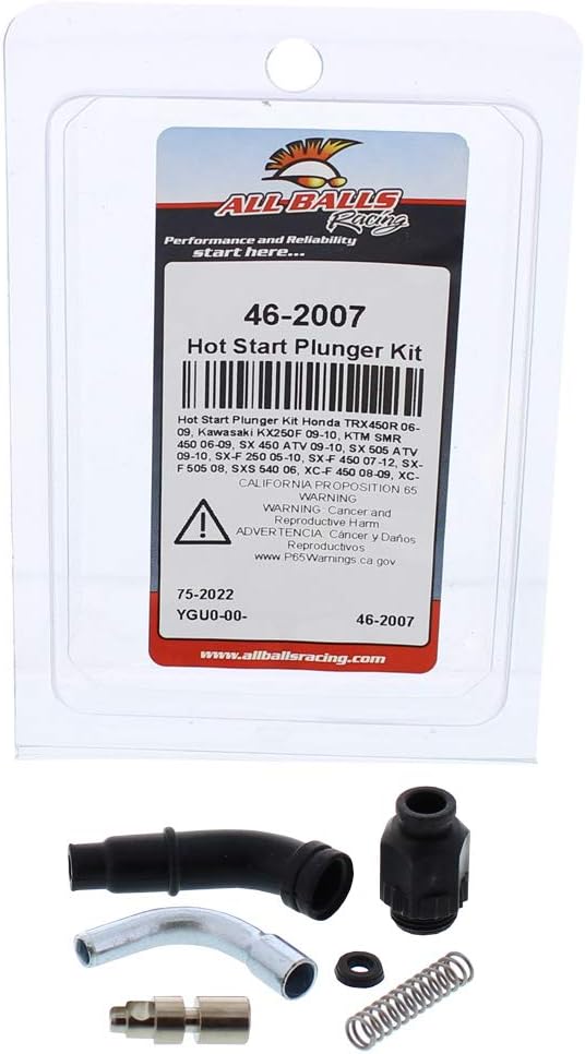 Verify the part fits before purchasingHot Start Plunger Kit for SuzukiApplications:Honda TRX450R 2006 - 2009Kawasaki KX250F 2009 - 2010KTM SMR 450 2006 - 2009, SX 450 ATV 2009 - 2010, SX 505 ATV 2009 - 2010, SX-F 250 2005 - 2010, SX-F 450 2007 - 2012, SX-F 505 2008, SXS 540 2006, XC-F 450 2008 - 2009, XC-F 505 2008 - 2009Suzuki RMZ250 2007 - 2009