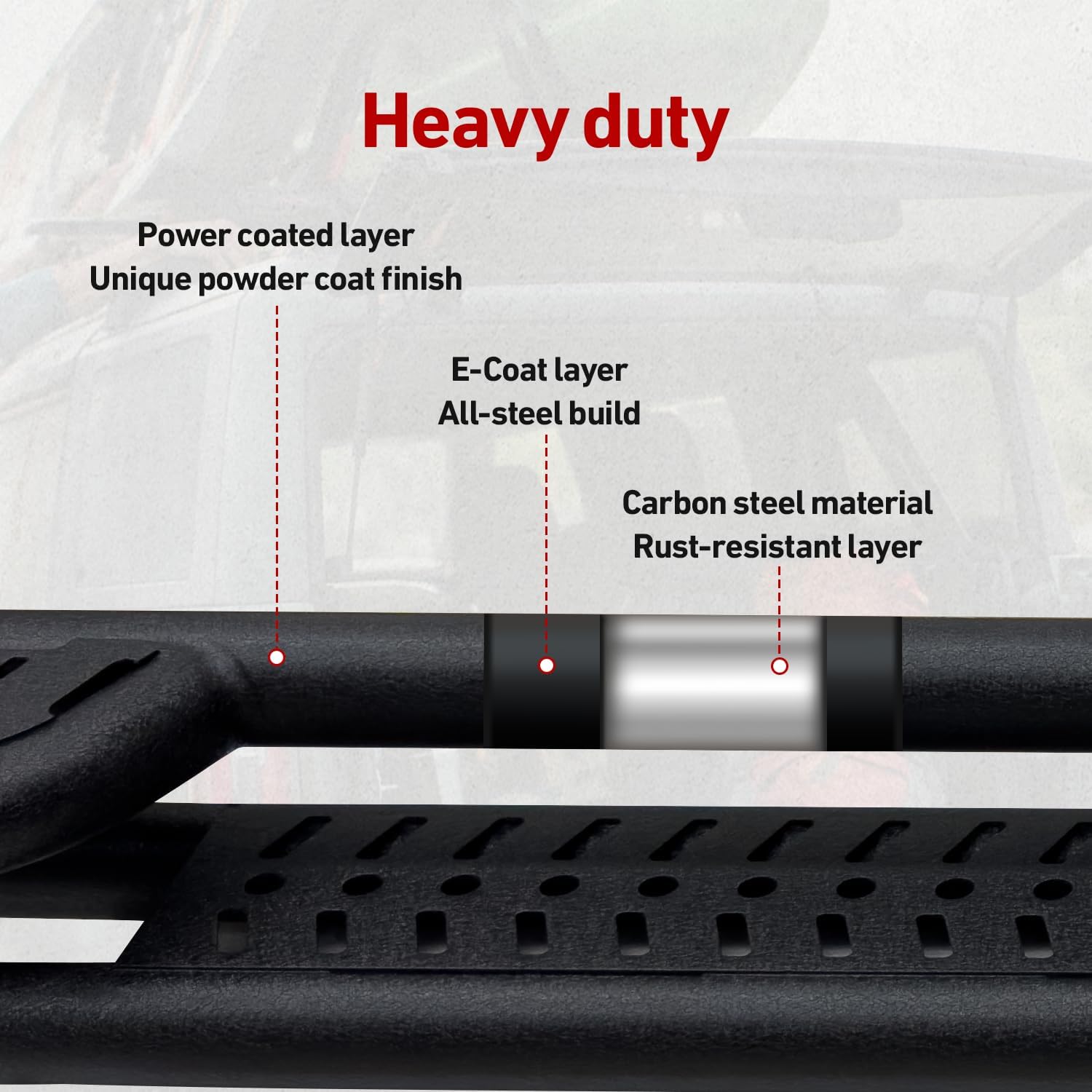 LUYWTE Steel Running board/Side Steps/Nerf Bars Fit 2015-2025 Ford F150 SuperCrew Cab&2017-2024 Ford F250/F350 Crew CabManufacturer Direct Sell | Awesome customer's service GUARANTEEDPackage included:✈Runing Boards✈mounting brackets✈Mounting Hardware✈Installation instructionsProduct Advantage:1. The material is make of 5/32" thick low carbon hard steel and 2" x 0.120" precision tolerance steel tube, stiffer, more durable running boards, advanced level 3 black powder coating, corrosion resistant and durable.2. Our running boards are engineered to be a direct bolt-on upgrade using just basic hand tools, so there is no drilling or cutting required,straight forward installation.