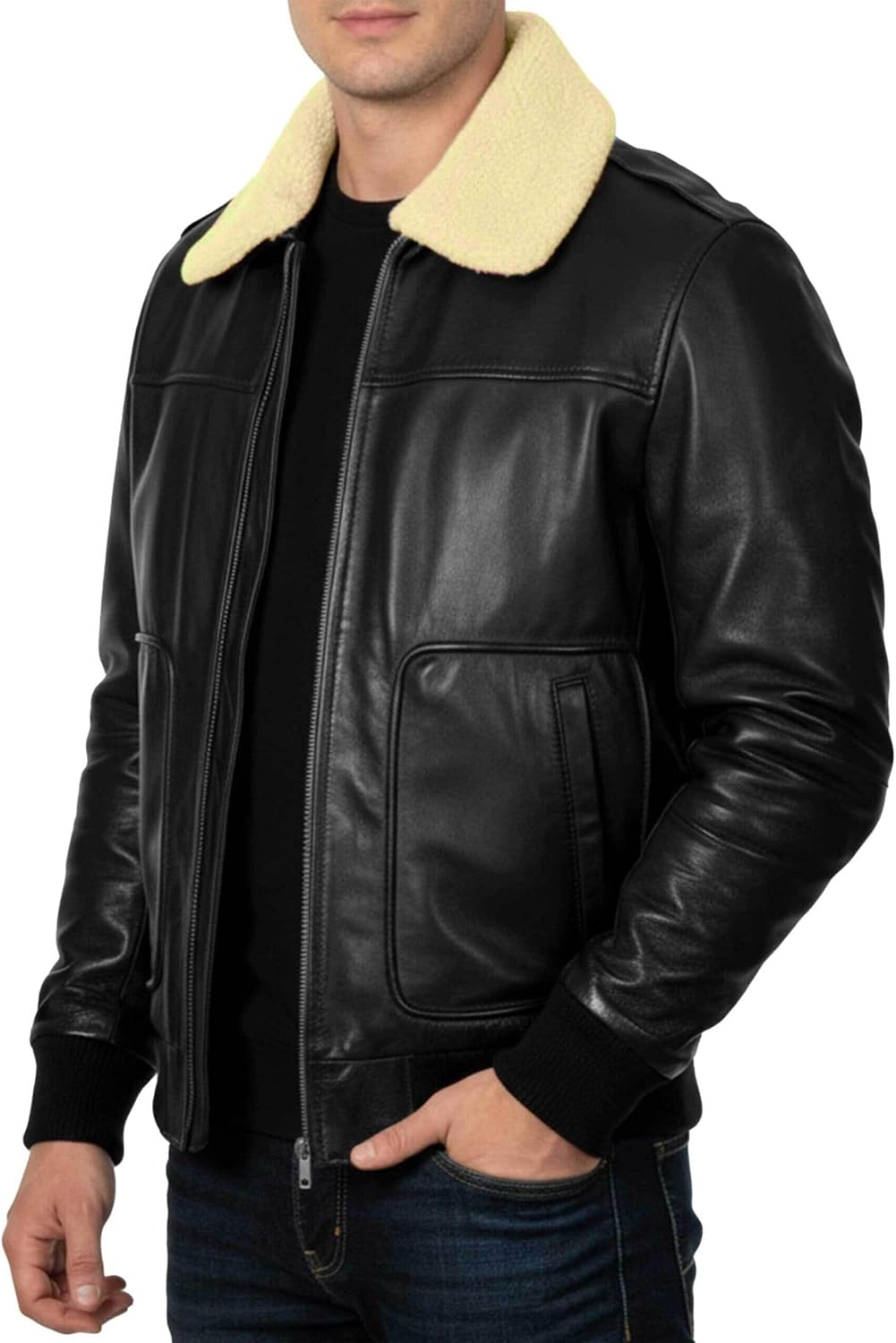 Experience timeless style and dependable craftsmanship with our Mens Genuine Leather Bomber Jacket, expertly crafted from finest-quality real leather to deliver long-lasting durability, a premium feel, and the classic appeal admired in genuine mens bomber jackets. Its sturdy front zipper closure ensures secure fastening and everyday convenience, offering the practical functionality preferred by those seeking a refined mens fur-collar style jacket. Designed with rib-knit cuffs and removable fuax fur collar, it provides a snug, comfortable fit that enhances the traditional look often associated with iconic aviator-inspired fashion. For practical storage, the jacket includes two convenient side pockets and two inner pockets, giving you ample space to keep your essentials safe while maintaining a clean, streamlined appearance. Inside, premium stitching and a soft polyester lining add exceptional comfort and durability, comparable to the finest lambskin leather jacket designs. To ensure the perfect fit, please refer to our detailed size guide an important step for anyone looking to enjoy a high-quality alternative to premium lambskin leather jackets.