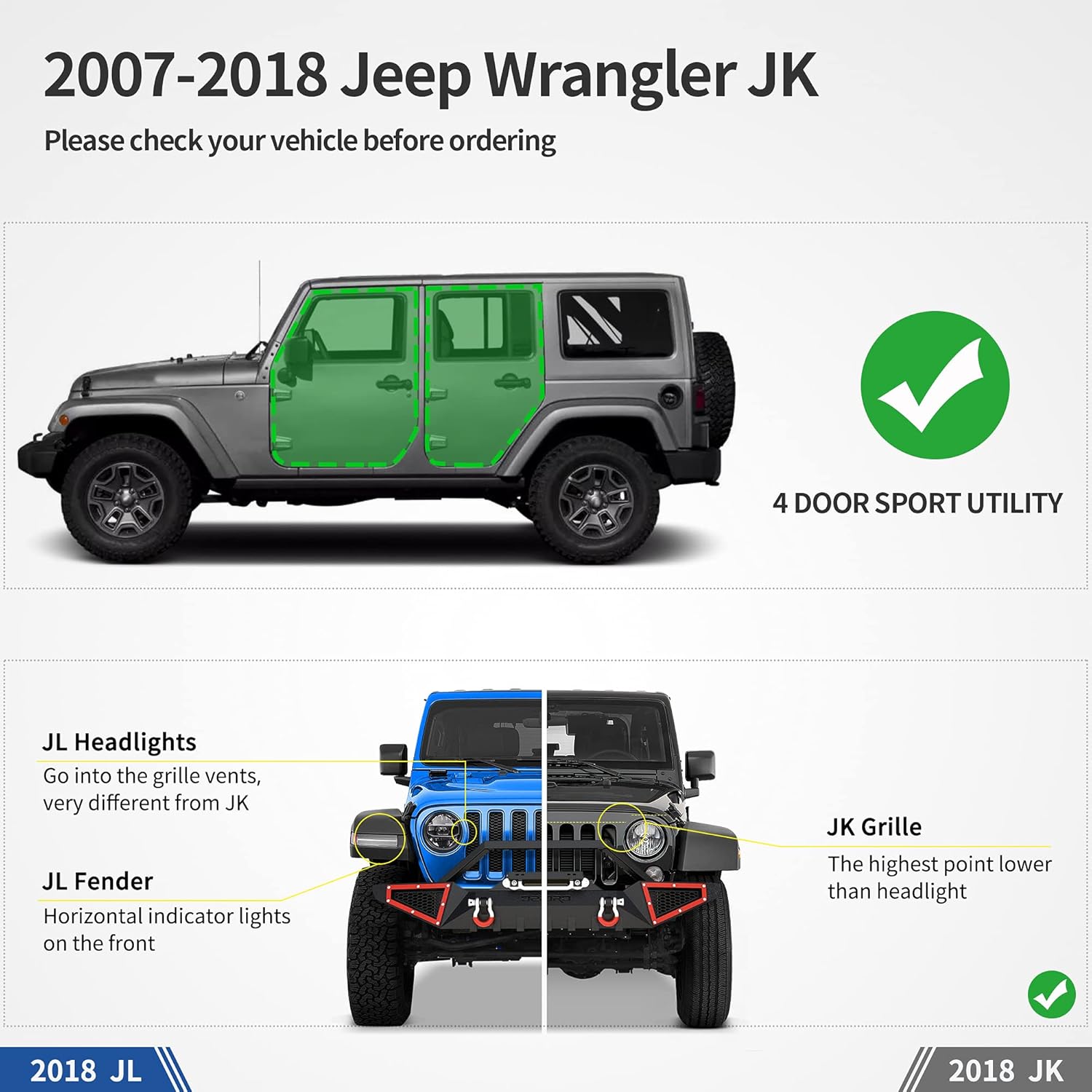 | Compatible with Vehicle Type | 2007-2018 Jeep Wrangler JK Unlimited JKU 4 Door |