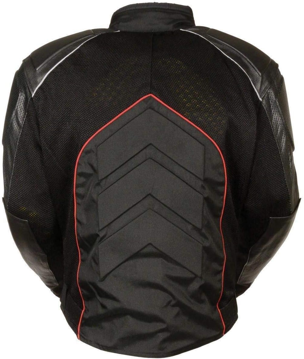 Milwaukee Leather-SH2153-Men's Combo Black/Orange Armored Leather/Textile/Mesh Jacket - This leather/textile/mesh combo jacket is a great choice for the rider who wants versatility in a quality motorcycle jacket. Hybrid motorcycle jackets are a great way to get the best of both worlds all in one jacket. This jacket is not too heavy and has the protection of a leather with its padded shoulders, back, and stomach area as well as removable armor in the shoulders, elbows, and back. Also contains a 3 way lining and reflective piping to improve visibility at night. If you can only own one riding jacket, this would be it