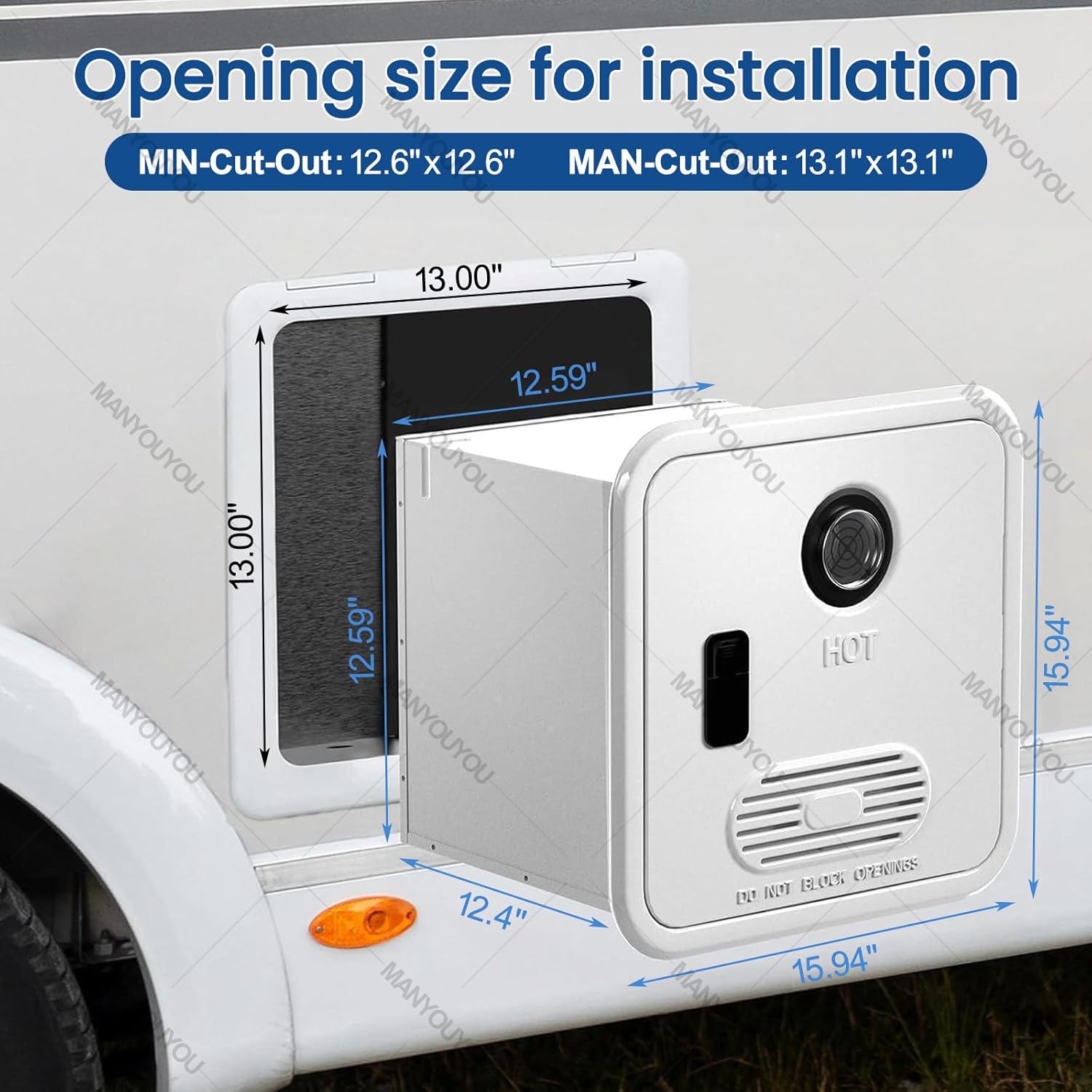 ♨Are you still waiting for hours for hot water in your RV?Our RV tankless water heater boasts a 55,000 BTU hot water capacity and reaches 124°F (about 51°C) in just 25 seconds, allowing you to enjoy warm water in no time. Whether you're showering, washing dishes, or multitasking, this water heater has you covered.♨Features:1. Equipped with an oxygen-free copper heat exchanger and a brushless DC fan, it operates flawlessly even at altitudes up to 2,900 meters.2. Its tankless design ensures instant hot water, ensuring a comfortable shower experience anytime.3. Its remote control allows for easy remote adjustment of water temperature and flow, adding convenience to your outdoor adventures.4. This durable water heater is suitable for camping trips, road trips, or any other outdoor activity where hot water is essential for comfort.♨Specification:Item Type: RV Tankless Water HeaterTemperature range:95°F - 124°F(35℃ - 51℃)Maximum Water Temperature: 51°C/124°FMaximum Heat Output: 61000BTU/HMaximum Heating Flow Rate: 3.9GPMOperating Water Pressure: 0.1-0.4MPa, 14.5-58PSIControl Method: Water Control SystemIgnition Method: Pulse Electronic IgnitionMinimum Cutout Size: 13x13 InchMaximum Cutout Size: 13.3x13.3 InchWater Inlet: Rear Bottom Left x1, 1/2in NPT InterfaceWater Outlet: Front x 1, Rear x 1, 1/2in NPT Interface, Front Outlet Above with Adjustable Valve, Selecting OutletInlet Air: Rear Bottom Right x 1, 1/2inSpecial Functions: Anti-freeze protection, dry burning protection, flameout protection, high water pressure protection, overheating protection♨Package Contents:1 x RV Tankless Water Heater1 x Wired Remote Control1 x Shower head♨If you have any questions, please contact us by email and we will respond as soon as possible within 24 hours.