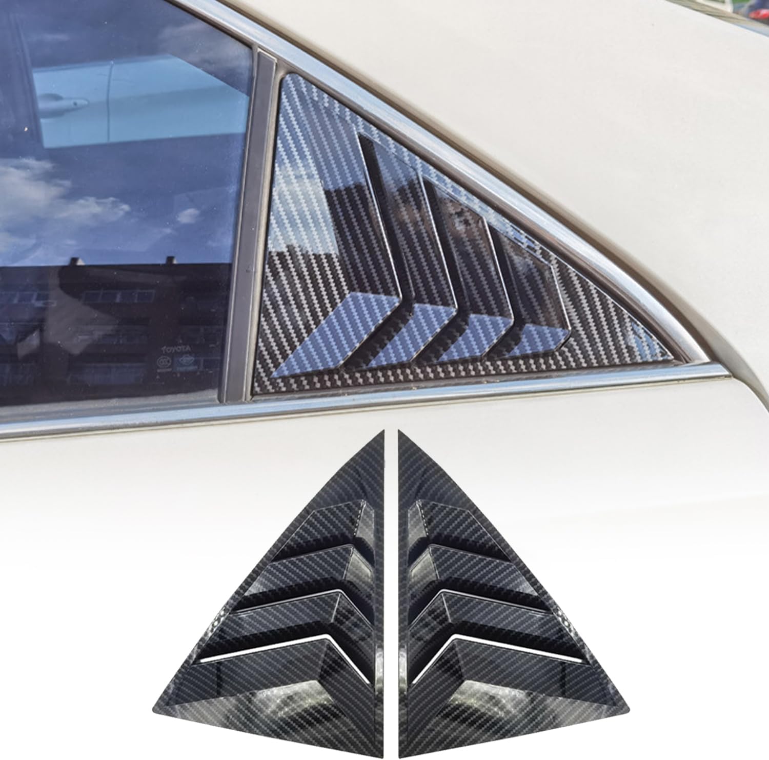 Color: Bright Black, Carbon Fiber Material: ABS Material Package Content: Rear Side Window Louvers × 2 Advantages: 1. Anti-Scratch and Wear-Resistant The product is made of high-quality and environmentally friendly ABS material, which is sturdy and durable. It can effectively protect your car from being scratched by flying dirt and sand during daily driving. 2. Perfect Fit The product is made according to the original car data measurement and perfectly matches the original car. It is beautiful and practical after installation. 3. Easy to Installation Before installation, just wipe the installation part with a rag, and when the installation position is dry, tear off the back film of the product and install it. (Keep the product in a dry state for two days after installation, the effect will be more stable.) ※ Before purchasing, please confirm whether the model and year are compatible with the product. Thank you for your understanding.