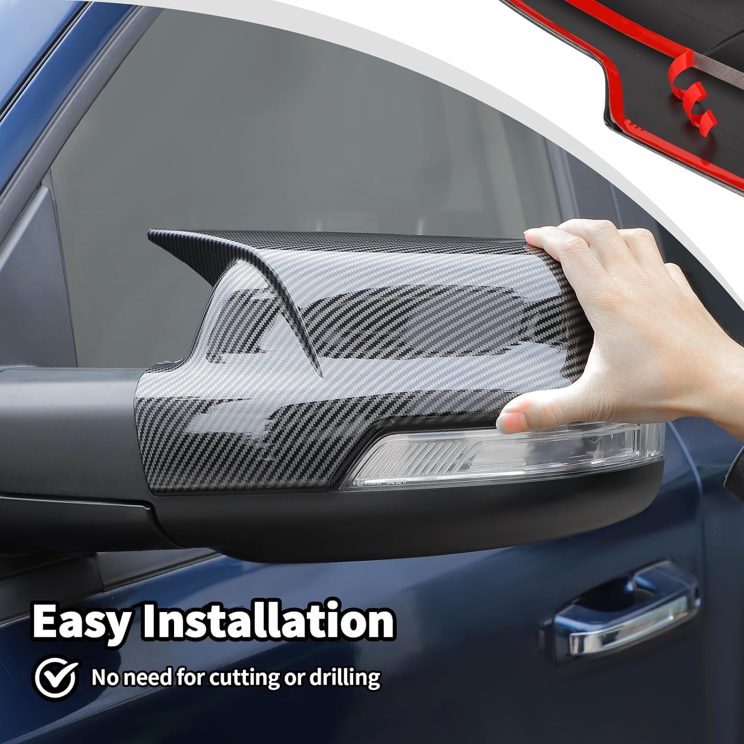 Model:-Side Mirror Cover Rearview Mirror Cover Replacement Decorative Trim Fit for 2018-2025 Dodge RAM Exterior Accessories Carbon FiberFeature:-Material: Made of Excellent Quality ABS plastic.This kind of material is strong and wear-resistant, and the adhesive can make the accessories fixed on the instrument very well.-Provides a high class, unique and fashion decor style to enhance the visual appearance of your car. It can cover existing scratches and prevent your door Door Handle from fingernails, key scratches and etc. Dress up your Door Handle and makes your car out of ordinary.Installtion Notes -1.Clean all positions with rubbing alcohol where will be covered in the Corresponding parts plate(Very important);-2.Make sure you heat both the accessories and the tape on the cover piece;-3.After the alcohol is dry, remove the protective film from the Double- sided tape on the back of the product;-4. Paste the accessories in the corresponding position and press it with your hand to make it more solid.After sales service-Our all products have 30 days of after-sale protection and 2 years services-If you have any suggestions or questions for our products, please tell us as soon as possible.Package Include:2pc*Side Mirror Cover