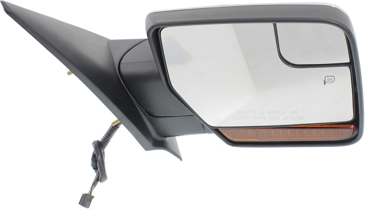Kool Vue Passenger Side Power Heated Mirror for Ford Expedition 2013-2014 Power Fold With Signal Light, Spotter Glass, Memory & Puddle Lamp Chrome