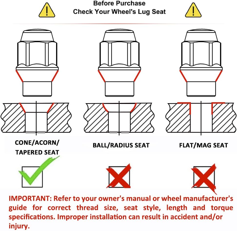 *** FOR SELECT AFTERMARKET and FACTORY WHEELS *** White Knight has established a solid reputation of providing the automotive aftermarket industry with quality products at competitive prices. White Knight lug nuts are constructed to enhance the luster of your wheels and provide maximum dependability and strength. Cold forged carbon steel for increased strength and uniformity, White Knight lug nuts meet or exceed OEM and aftermarket application standards. ( No fancy ads or packaging which elimates costs to offer you our rock-bottom price with same quality )