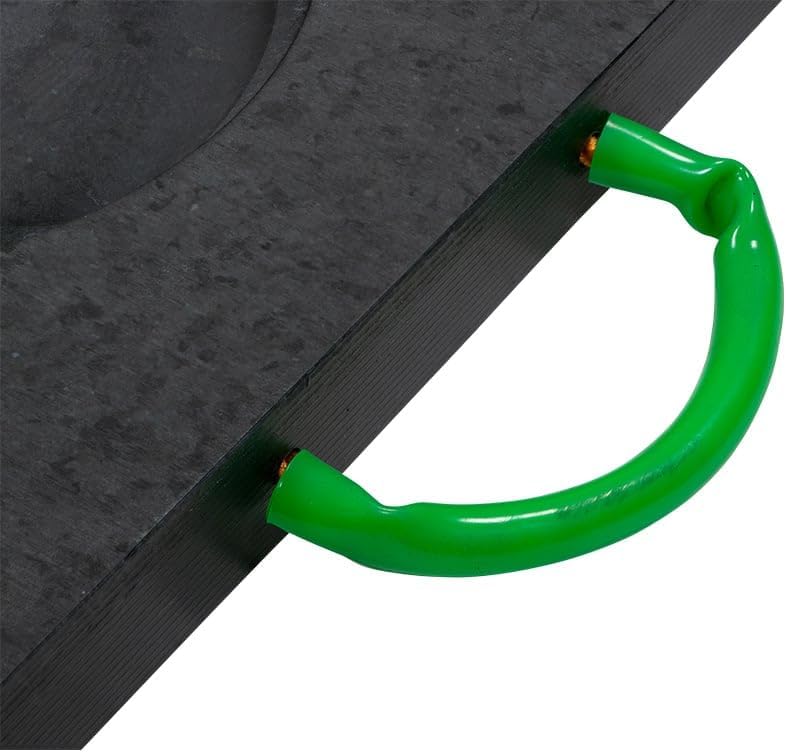 Pack Size: 2 PackHere’s an Outrigger Pads safety tool for your vehicles. This efficient tool stabilizes and provides balance to outriggers, down jacks, or stabilizers on various surfaces. There are chances that your vehicle might lose balance, collapse, or shift because of certain ground. Prevent accidents and ensure safe crane operation with our outrigger pads. It will act as a protective barrier between your vehicle outriggers and the ground. Learn more about it below:-Dimensions: We have designed our outrigger pads of the following size and thickness: 18" x 18" and 2", respectively. Meanwhile, the recessed depth and diameter are 3/16 inch and 12-3/16 inch, respectively. The black square-shaped outrigger pads will provide a solid base for the vehicle’s foot and ensure a snug fit while maintaining stability and a safe working environment.Unbreakable Strength: The crane pads are engineered from Ultra-high molecular weight polyethylene (UHMWPE) compound material. It ensures strength, stiffness, and reliability during rigging and lifting. Utilize it between your vehicle and the ground, perfect for outdoor use. Also, it has a good tolerance level against acids and alkalis.Even Weight Distribution: Our outrigger pads offer compatibility with different/soft grounds and surfaces, eliminating the risk of vehicle disbalancing. It will evenly distribute the weight of the crane feet/outrigger, giving subtle stability and support to stand firmly. Also, don’t worry about slipping as our outrigger crane pad has anti-slip quality, prioritizing safety and environment friendliness.Ergonomic: A single person can easily carry our outrigger pad. It offers the utmost comfort as we have utilized nylon rope and PVC hose heavy-duty handles. The design is user-friendly, thus, making it your next comfort choice.High Performance: outrigger mat has a maximum allowable load rating of 200 PSI, which ensures good impact intensity and breaking elongation. Meanwhile, the compression strength, like the 45-degree load limit and vertical load limit is as follows: 35,000 lbs and 60,000 lbs, respectively. Do not cross the suggested limit to avoid breaking and accidents.Compatibility: It offers compatibility with different types of vehicle feet, outriggers, and stabilizers. It supports configuration with both square and round shape outriggers. However, round vehicles’ outriggers must be equal to or less than our recessed radius.**Load-bearing capacity is subject to ground conditions.