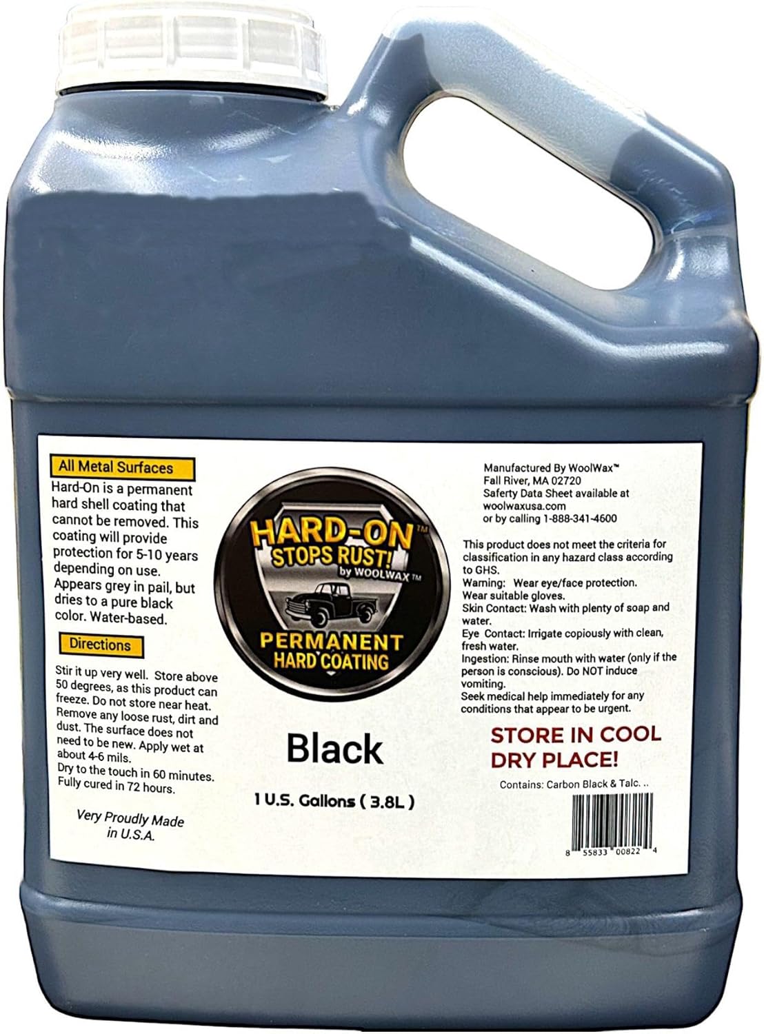 Woolwax Hard-On is a high performance, permanent 1-time hard shell coating. Not rubber. Permanent One time hard corrosion inhibiitor. Auto / truck undercoating. NOT rubber. The surface should be newer and rust free. Hard-On is developed to be applied on new surfaces. It is not intended to be used on surfaces with surface rust. (Use original Woolwax for rusted frames). If you are not sure that you want a permanent (cannot be removed) coating, please contact us for more information. Once applied, there are no do-overs. Please consider this carefully. Looking for a permanent 1-time hard shell coating for your truck frame or equipment? Hard-On by woolwax is what you need. Originally developed as a chip guard for trailer trucks this formula is perfect for any long term applications. Hard-On is water based , so it has almost no smell. Dries to the touch in about 1 hour, and after 72 hours it is fully cured. Hard-On by Woolwax is an excellent solution for wheel wells which is always a high wash area. Hard-On is a water based coating that can be used on any metal surface. No smell. Paint or spray on.