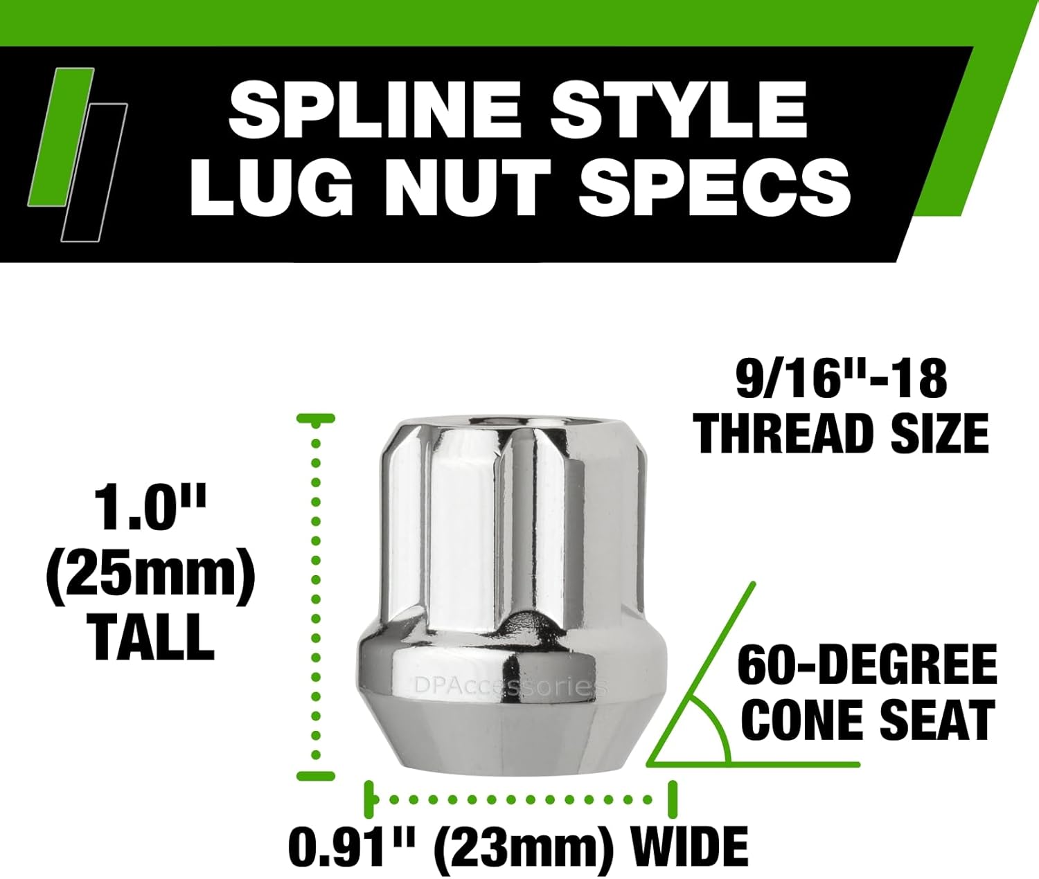 | Special Features | Color: Chrome | Finish: Chrome | Material: Heat Treated Steel, Hex Size 1: 13/16" & mm | Hex Size 2: 7/8" & 22mm, Lug Style: Open End Duplex Spline Tuner, Seating Style: Conical 60 Degree Seat Nut, Thread Size: 9/16-18 |