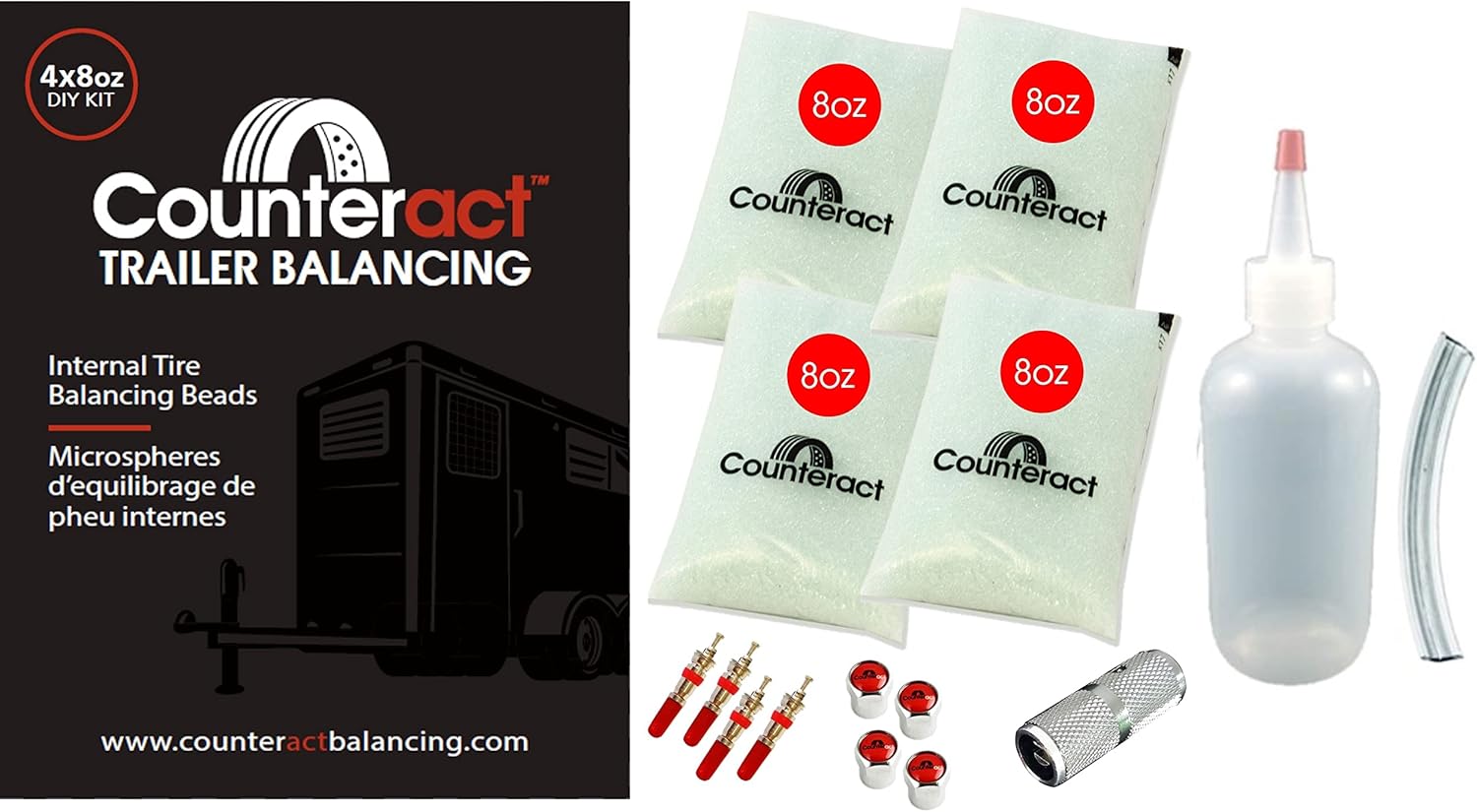 Counteract or any other internal tire balancing product is NOT recommended for us in small passenger cars (Such as a Honda Civic, Small Crossovers, SUV etc.). This product is only recommended in vehicles with a 1/2-ton suspension and up, Off-Road Vehicles, Motorcycles, ATV, UTV, Commercial Vehicles, Bus, RV and more. Counteract Balancing Beads is the only tire and complete wheel assembly balancing product on the market proven to improve fuel economy in two separate S.A.E and TMC type II tests. Counteract Balancing Beads are manufactured as a tempered glass bead that is placed inside a tire, or injected through the valve stem, allowing for a complete tire & wheel assembly balance without the use of external wheel weights. Counteract extends tire life, improves fuel economy, balances the complete wheel assembly, decreases vibration and driver fatigue, last for the life of the tire, and is environmentally friendly. The DIY Kits include everything you need to install the product at home via the Valve Stem. If you are having new tires mounted, every bag of Counteract 4oz & up is a Drop In Bag system. Simply open your Counteract Balancing Beads bag, and place the inner clear bag containing Counteract inside the tire cavity as it is being mounted. Once the tire is sealed and mounted to the vehicle, the bag will break on its own when the vehicle starts to move.