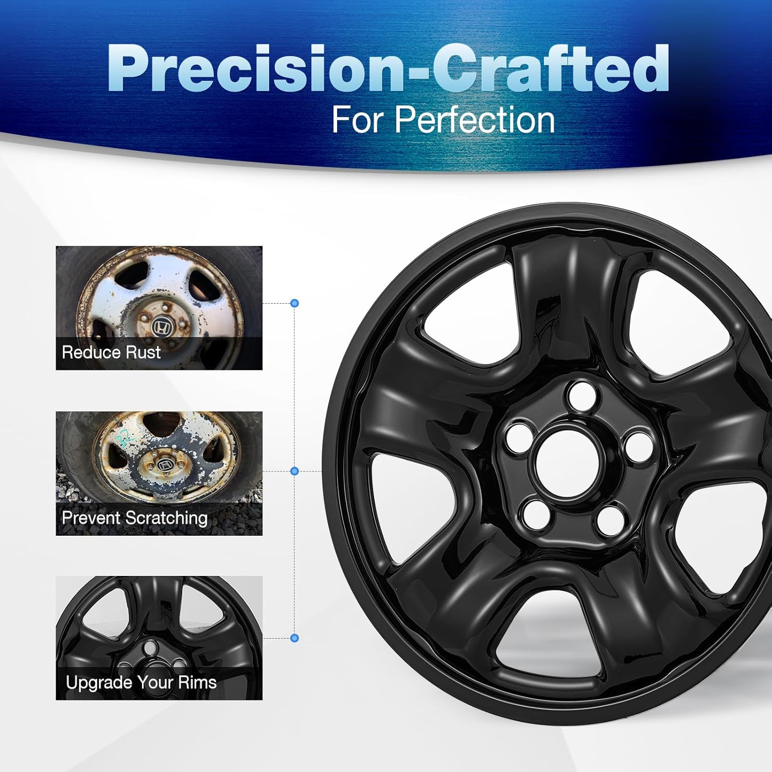 This item is a Brand New Replica Set of 4 16-inch Black ABS Wheel Skins replacement for 2012-2016 HONDA CR-VThis 16" Wheel Skin will Fit: for 2012 Honda CR-Vfor 2013 Honda CR-Vfor 2014 Honda CR-Vfor 2015 Honda CR-Vfor 2016 Honda CR-VIt fits only 16-Inch Steel Wheel. NOT fit Alloy wheels or other size wheels (Please refer to the image guide on listing).[Tips: Please note that these wheel skins are designed to fit flush with steel wheels, so make sure that your wheels match the exact shape of the skins shown to ensure proper fitment before ordering.]Features:Our premium replica wheel skins are made of an upgraded, sturdy ABS plastic and feature a rich silver finish, strong and durable.With extra sturdy mounting clips, for a super secure fit.They will add a great look on your Honda CR-V for a long lifetime. Provide reliable protection against scratches, dents, and other types of damage to better protect your vehicle's wheels.Our Wheel skins Compatible with Factory Center Cap, no need remove the center cap during installation. Also the tires can be changed without removing this wheel skin in future daily fixing.Material: ABS + PCRim Size: 16 InchColor: Glossy BlackFit Factory wheel OE/OEM Part Number: 42700-T0A-A01; 42700-T1W-A01;Package included: 4 pcs 16in Wheel Skins; some sponge stripeNotes: To Avoid any problem, please make sure that all wheel covers are installed properly to the wheel's rim edge. Test it before driving on the road.If you have any questions about the product or have other questions, please contact us via Amazon Message in time, we will try our best to help you solve it.