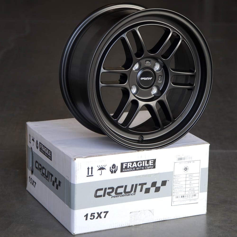 Circuit Performance CP37 15×7 Flat Black 4×100 [+28mm] Compatible with Honda Civic, Acura Integra, Mazda Miata, BMW E30