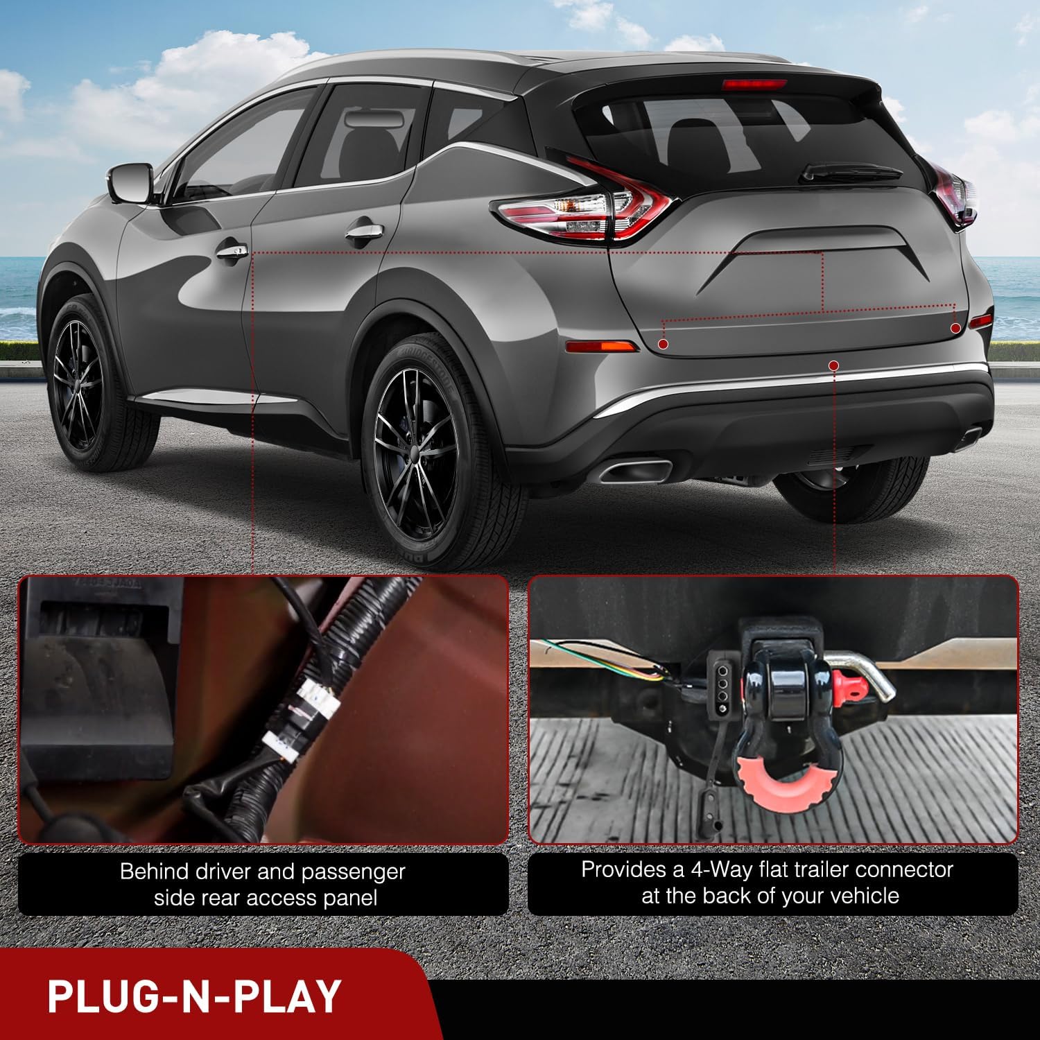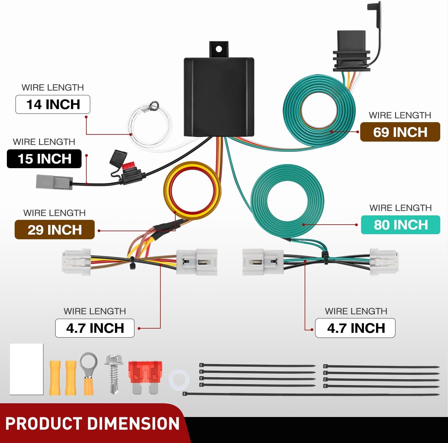 | Included Components | Custom 4-Pin Trailer Wiring Harness*1, Zip tie*9, Screw*1,10 A Fuse |