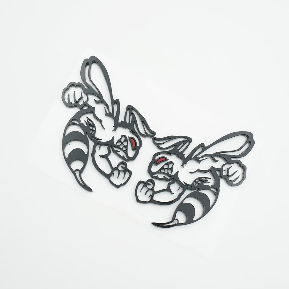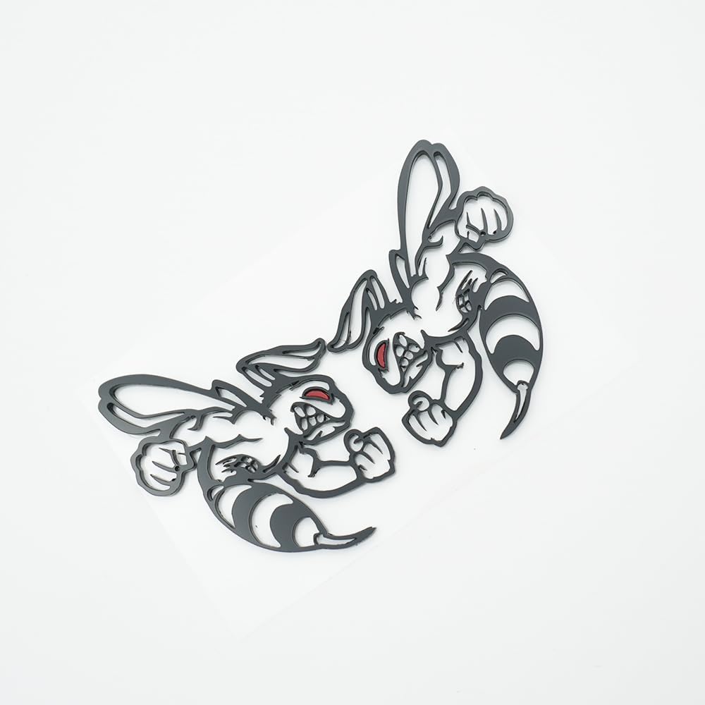 Pair Set Hornet Emblem BEE SWOLE Red Eye Badges Fender Angry Agressive Nameplate Replacement for Universal Car Vehicle, Truck, Motorcycle Door Window Decoration