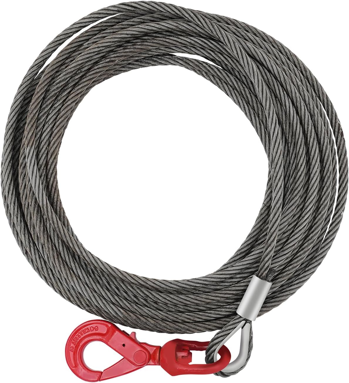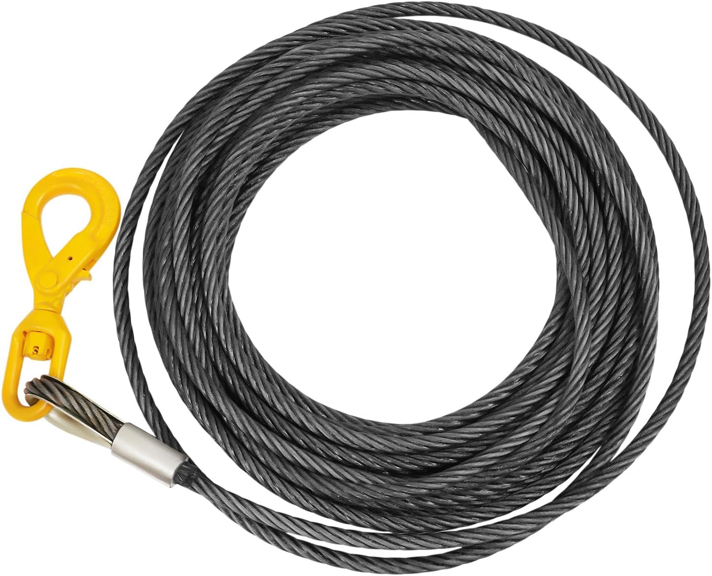 SpecificationColor: Grey, YellowMaterial: Carbon SteelProcess: Wire Drawing, Heat Treatment, Oil CoatingMax. Working Load Limit: 1120kg/2469.18lbsBreaking Strength of Hook: 4000kg/8818.49 lbsWire Rope Diameter: 1.12cm/0.44inWire Rope Length: 15.24m/50ftNet Weight: 6.95kg/15.32lbsPackage Included1* Wire Rope with swivel HookDetailsHigh Visibility Yellow: The yellow hook stands out starkly against the wire rope and work environments, ensuring quick checks on hook engagement and locking status.ApplicationThis core steel towing cable is suitable for most trailers, off-road vehicles, winches, hoists, electric hoists, and industrial cranes. It is suitable for winch operations, lifting, rigging, towing, etc., in construction, mining, marine engineering, transportation, manufacturing, and many other industries.Notes1. Please check the product's size carefully before purchasing.2. When using this core steel towing cable with swivel hook for lifting or towing, please ensure that the load is evenly distributed on the wire rope to avoid local overload. Please avoid contact between the steel wire rope and sharp objects to prevent scratching or cutting.3. Please check regularly and store and maintain this product correctly. It should be stored away from contact with chemicals such as acids and alkalis, and protected from high temperatures, humidity, and direct sunlight.4. When using the product, it should be properly tied and secured, and its condition should be closely monitored. If any abnormal situation is found, the operation should be stopped immediately and checked.