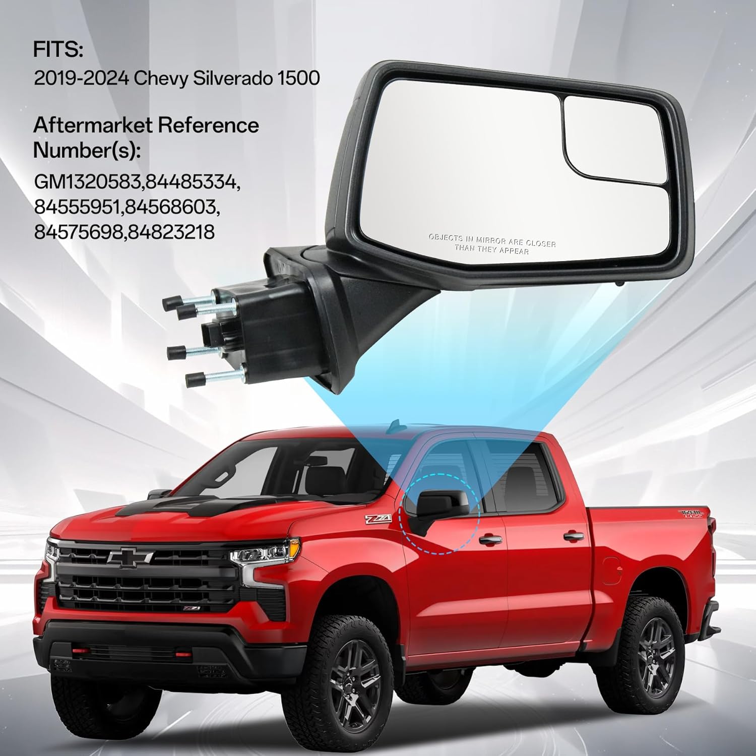 | Included Components | 2019 2020 2021 2022 2023 2024 Chevy Silverado Side Mirror ×1 |