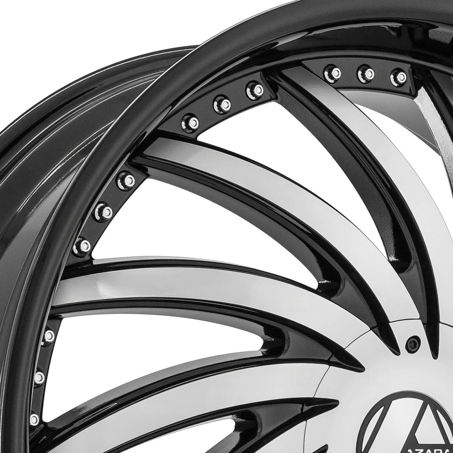 Brand: AzaraStyle: AZA-508Size: 18x8Bolt Pattern: 5x114.3 (5x4.5")/5x120Offset: +35mmBackspacing: 6"Hub Bore: 74.1mmFinish: Gloss Black/MachinedQuantity: 1