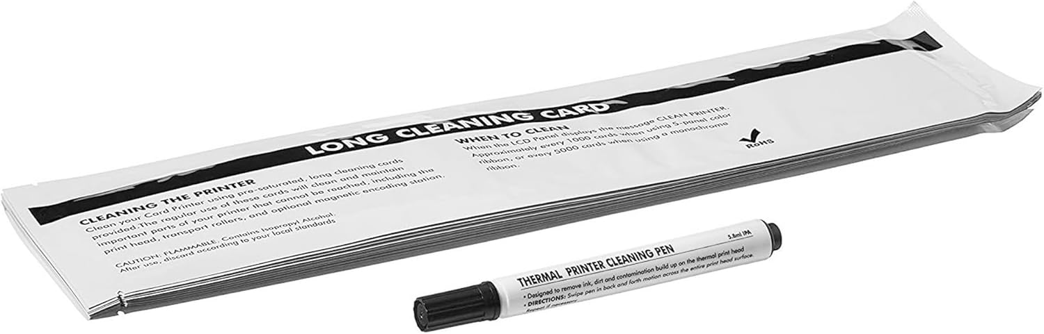 The Bodno Cleaning Kit 3633-0053 for Magicard Printers is the ultimate solution for maintaining optimal performance and cleanliness of your Magicard card printer. Specifically designed for Magicard Enduro and Rio Pro models, this comprehensive cleaning kit ensures consistent and high-quality prints. 3633-0053 includes all the essential tools you need to keep your printer in top condition. The kit provides cleaning cards that effectively clean the rollers, removing dust, debris, and other contaminants that can affect card feeding. These cleaning cards ensure smooth and uninterrupted card transportation, resulting in flawless prints with every use. In addition to the cleaning cards, the kit also includes a cleaning pen designed specifically for printhead maintenance. The cleaning pen features a specialized cleaning solution that effectively removes ink residue, dirt, and other impurities from the printhead surface. Regular use of the cleaning pen helps maintain clear and sharp prints, ensuring consistent print quality. With these comprehensive cleaning tools, you can effortlessly maintain your printer's performance without requiring extensive technical expertise. Regularly cleaning the rollers and printhead helps prevent printing issues and extends the life of your printer. Invest in the Bodno Cleaning Kit for Magicard Printers (3633-0053) and experience enhanced printer performance, improved print quality, and prolonged printer lifespan. With this comprehensive cleaning kit, maintaining your Magicard card printer has never been easier. Order your Cleaning Kit 3633-0053 today and ensure that your prints are consistently professional and of the highest quality.