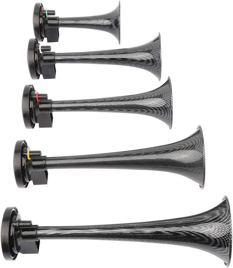 Features:1. Loud and clear sound.2. Strong and durable, suitable for any weather and season.3. Easy to install.4. Long service life, reliable working performance5. Fit for cars, trucks, vans, tractors, motorcycles, or boats.Packaging included:1 x 5 Trumpets Air Horn1 x Compressor1 x Hose1 x Horn Button1 x Relay1 x Wiring Kit1 x Package of FittingsNote:1. Please double-check product images and fitment information to confirm compatibility before your purchase!2. Please DO NOT use it near schools, residential areas, or hospitals.