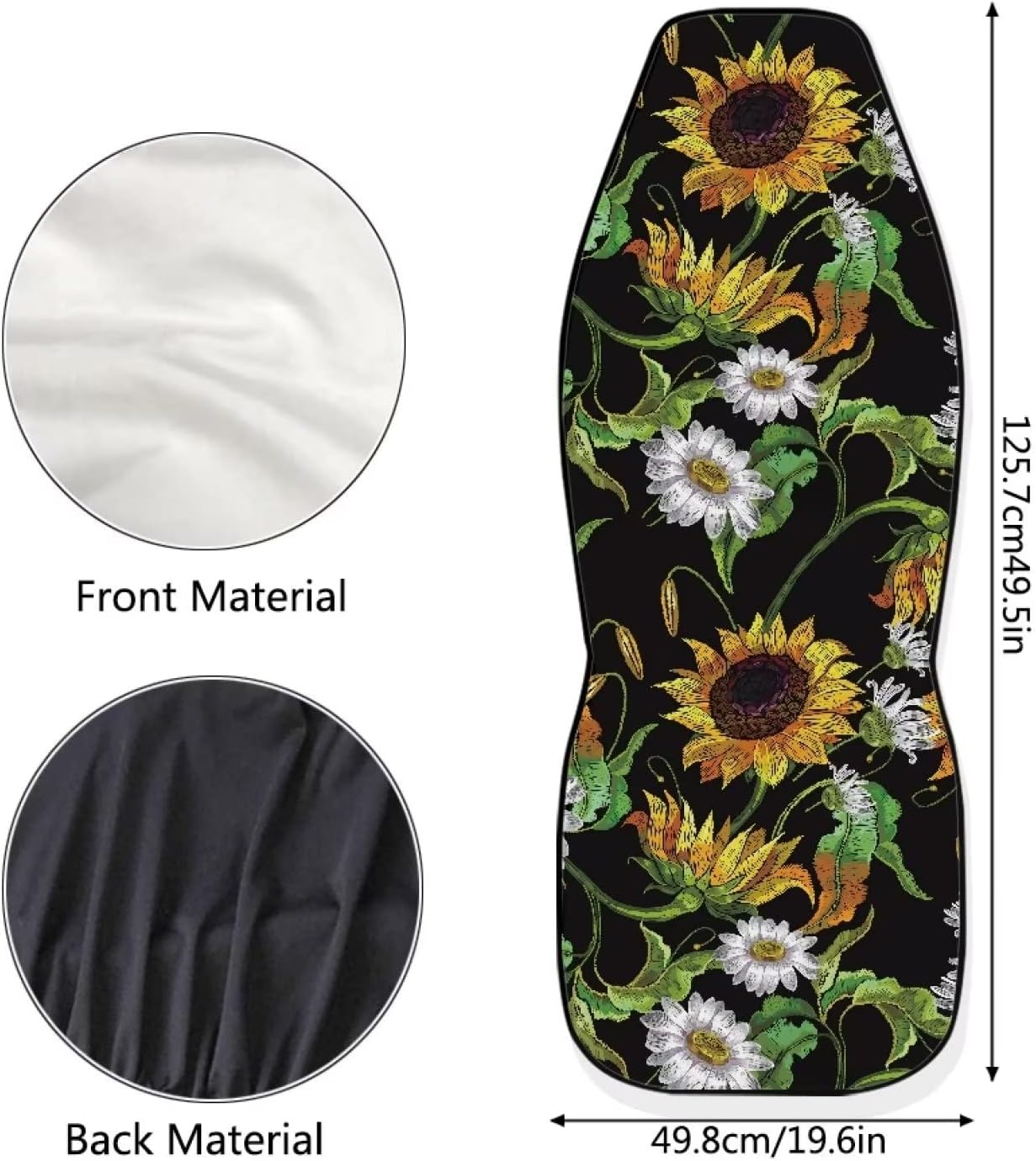 Fashion Car Seat Covers for Front Seats Only!--PACKAGE: Front seat cover for cars 2 piece full set.--Washable, Easy to clean, Durable, Non-slip, All season universal.Main Features:1. The Front Seat Covers can protect your seats from UV rays, spills, kids, pets, work, tools, entry/exit friction, food, sweat, dust/wear and scratches/dirt, ect. This Style Car Seat Covers for maximum comfort during the driver daily commute. Stay cool and comfortable during your drive. And Provide the best protection for your vehicles internal and get more long life.2. Vivid printed pattern desig, making your car stand out from other cars. Decorate your vehicle, give you a new unique and stylish look of your car's interior, covering existing damage, or even personalize your interior to suit your taste and interest.Warm Tips:1. The sizes and installation instructions have been shown in the detailed pictures, please read carefully before purchase.2. The color difference between the product and the picture is normal due to the difference of shooting light or the screen display. Please allow 1-3 cm error due to manual measurement.3. Not for use on seats with side airbags.Thanks for your business! We will always strive for customer satisfaction. If you have any questions, please don't hesitate to contact us directly !