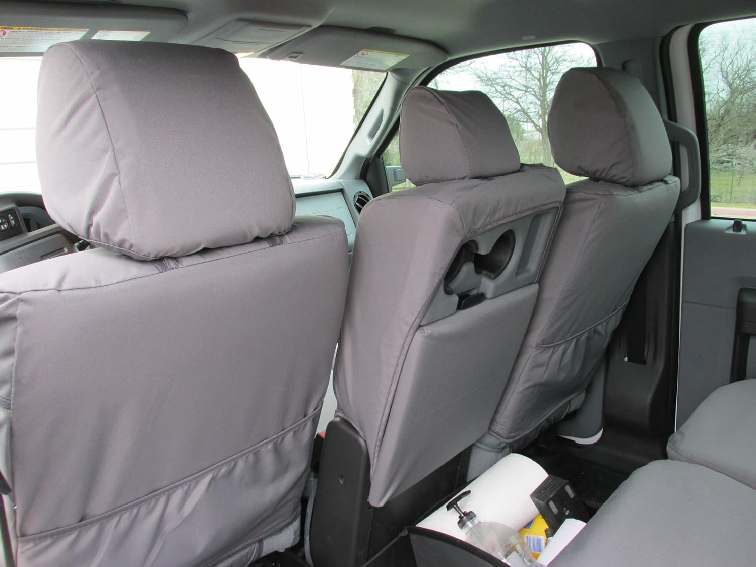 Durafit Seat Covers made to fit 2013-2016 Ford F250-F550 Exact Fit Seat Covers for 2 row benches. Durafit Seat Covers has been covering fleet vehicles since 1982, we believe in an exact fit for a good look and low maintenance. Designed for consumer installation over existing upholstery. Take the heat out of that vinyl and have a sanitary interior, good match to gray interior.