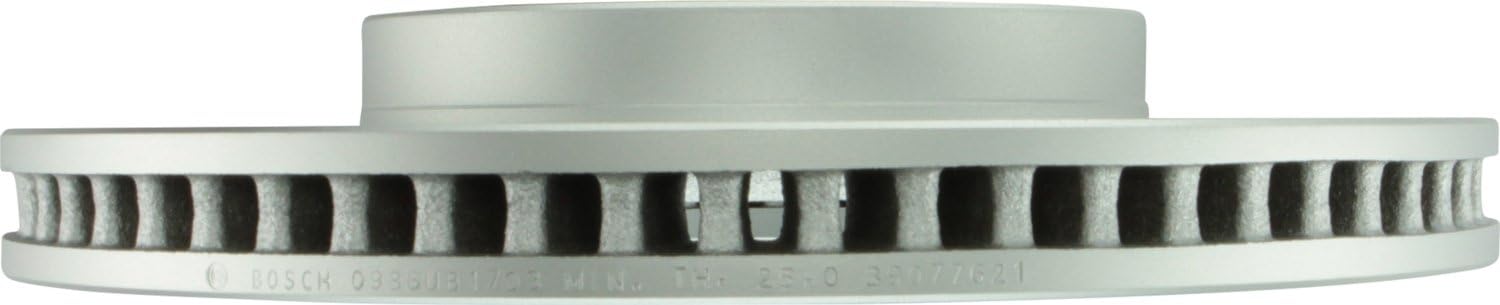 Bosch QuietCast is a name you can depend on, with minimum tolerance levels and innovative materials that ensure the very highest quality and brake judder, noise, vibration, and harshness free operation. All QuietCast rotors are factory mill precision balanced, which disperses the weight evenly, and allows for smooth, safe stops with no pedal pulsation. Performance is ensured by OEM style vane configurations that provide more efficient heat dissipation, reduced vibration for quieter operation, and extended rotor life. Aluminum/Zinc coating protection prevents rust and corrosion, extending the life of the rotor while providing a clean look for today's open wheels. OEM style ABS tone rings (on required applications) provide trouble free operation of Antilock Brake and Traction Control systems. Every Bosch QuietCast rotor features an engraved discard thickness, that lets you know when the rotor has reached its useful life, and an “on-the-part” Bosch brand name, so you can be confident you are receiving an authentic Bosch product.