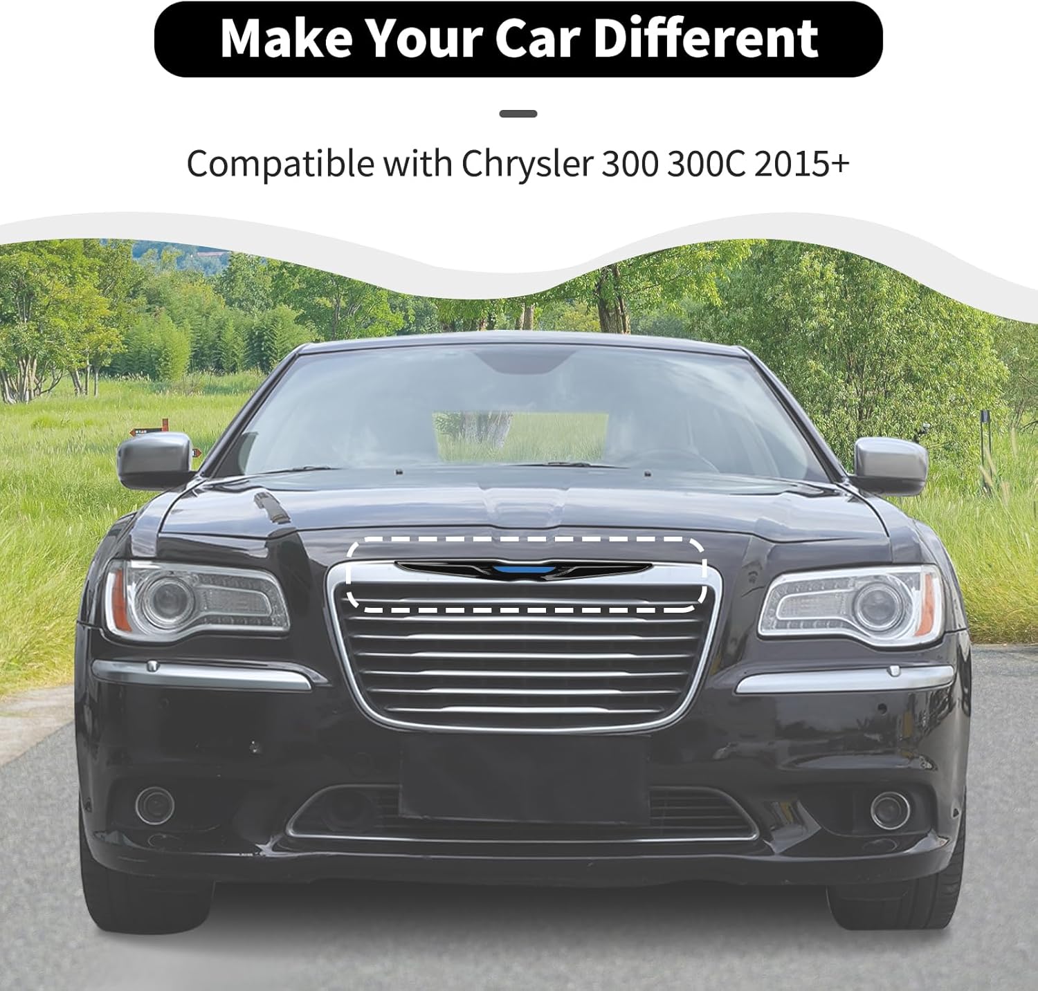 HTHE Black Front Bumper Grille Emblem Cover Rear Emblem Badge Cover Trim Compatible with Chrysler 300 300C 2015+