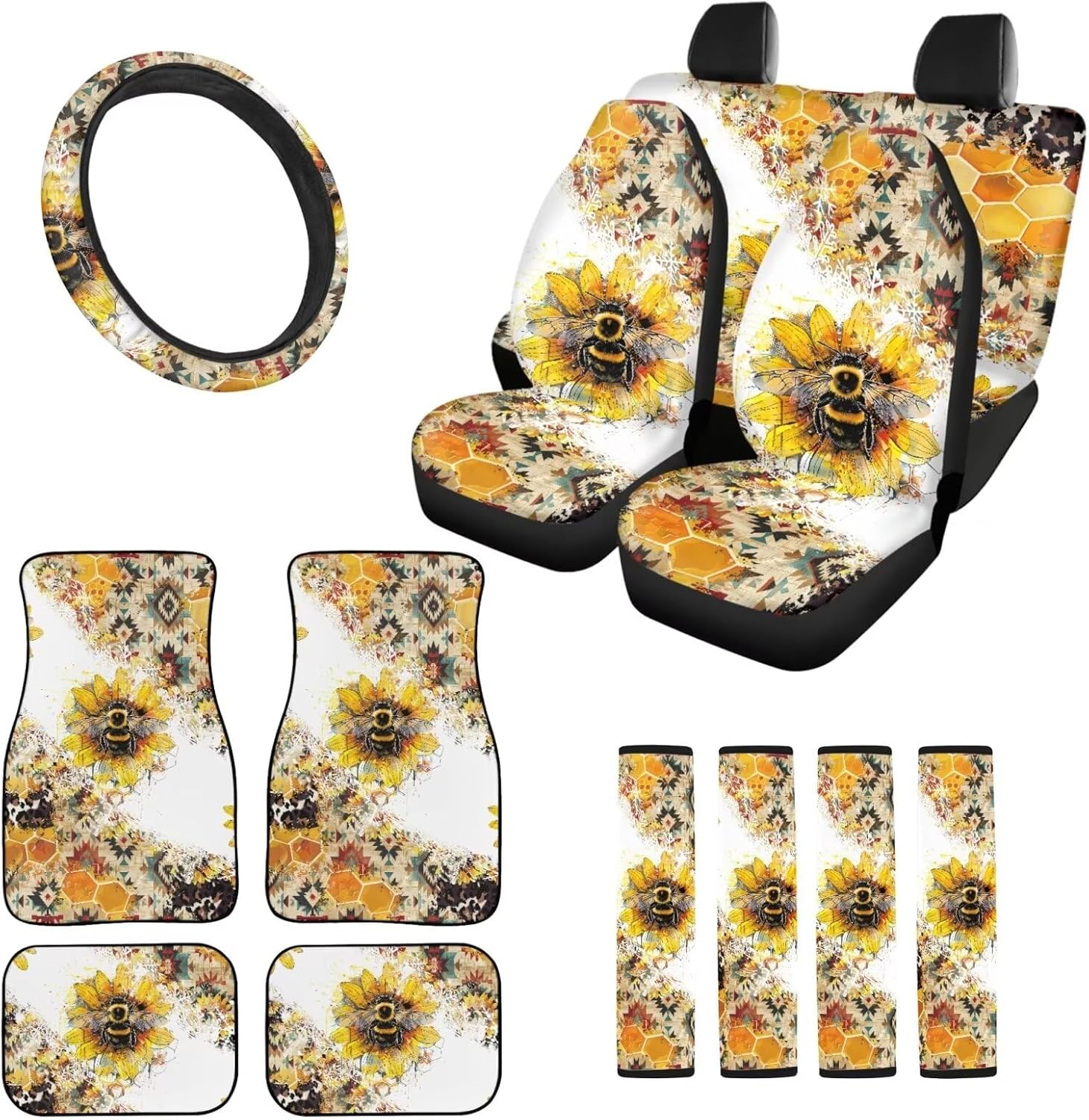 [Size] - Front Car Floor Mat:17.3”x26.8” - Rear Car Floor Mat:17.3”x13.1” - Front Car Seat Cover:18.7”x19.5”x31.3” - Car Seat Belt Cover:10”x7”(Fold 2.5inch) - Steering Wheel Cover:15” [13 pieces car accessories] - Packages includes : 4 Pieces Car Seat Cover,4 Pieces Car Floor Mats,4 Pieces Seatbelt Shoulder Pads,1 Steering Wheel Cover. - High quality car steering wheel can give you a better grip and control on the road,increase safety. - Soft car seat belt shoulder pads will take off rubbing from your seatbelt,relieve your neck and shoulder stress,make your driving more relaxing. - Full set car seat covers and rubber backing car floor mats will keep your vehicle interior clean,or cover your aging car interior,give your car interior a new look. - Due to installation requirement,please check dimensions before purchasing. - If you have any questions,please feel free to contact with us.
