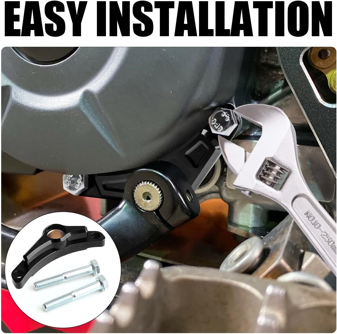 Shift Shaft Brace For Honda CRF110F More on the way! Don’t get stuck with the hassle of replacing a bent shift shaft, let alone lose a race because of missed shifts. These custom URLWALL shift shaft braces came out so clean. They're functional, lightweight and look factory. Order yours today because they're gonna go fast! Features: Brand:URLWALL Color:Black Material:7075 billet aluminum Compatible models:Honda CRF110 2013-present Functions: Fits tight over shifter shaft and bolts to case Simple modification helps prevent the common bent shifter shaft and more expensive repairs Package included: 1x Shift Shaft Brace 2x Screws