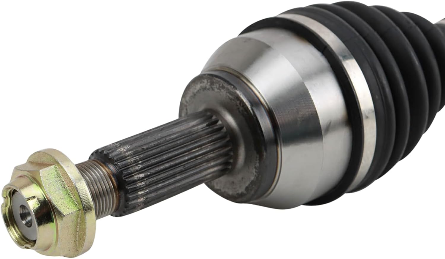 CV Axle AssemblyFitmentFord Fiesta 2011-13 - Dual Clutch Automatic Transmission Front Driver Side 2014-17 - L4 1.6L Dual Clutch Automatic Transmission Front Driver SideProduct AttributesAxle Nut Socket Size: 1.26 inCompressed Length: 22.2 inOutboard Spline Quantity: 25Axle Nut Socket Size: 32 mmInboard Spline Quantity: 34Compressed Length: 564 mmAxle Nut Thread Size: M22x1.5Inboard Joint Type: MaleOutboard Joint Type: MaleABS Tone Ring Included: NoGrade Type: Standard ReplacementAxle Nut Included: YesOutboard Boot Material: NeopreneInboard Boot Material: NeopreneProduct Features 100% New: Manufactured to tighter tolerances for extended service life Neoprene Boots: Improved durability compared to stock material Moly Greased: Specifically-designed grease shield to reduce premature wear Application Specific Design: No modificationItem DetailsTRQ CV (constant velocity) drive axles are manufactured using premium raw materials designed to restore original performance. TRQ CV drive axles are new, so there is no core charge with your TRQ purchase. TRQ-designed drive axles utilize neoprene boots, moly grease, stainless steel clamps, and heat-treated ball tracks to ensure extended service life. Each TRQ axle is application-specific so each spline and thread will mate properly for a seamless fit. All products are fit and road-tested in our Massachusetts R&D facility to ensure we deliver on our promise of Trusted Reliable Quality.Reference Numbers66-2273662273D1BZ3B437AFD8290NCV11053