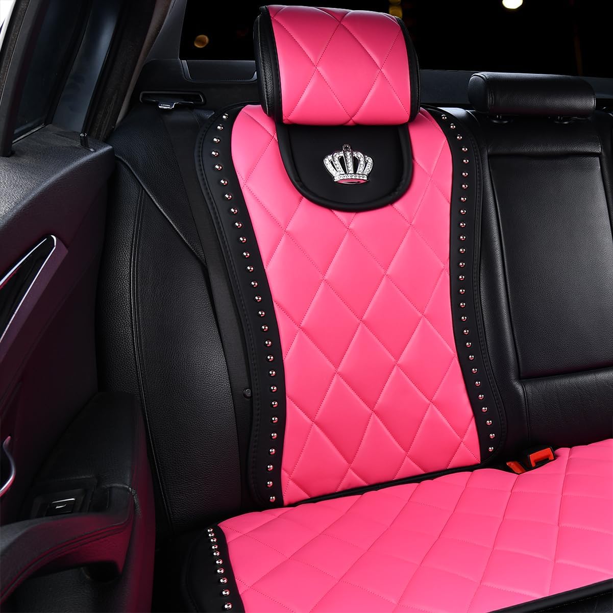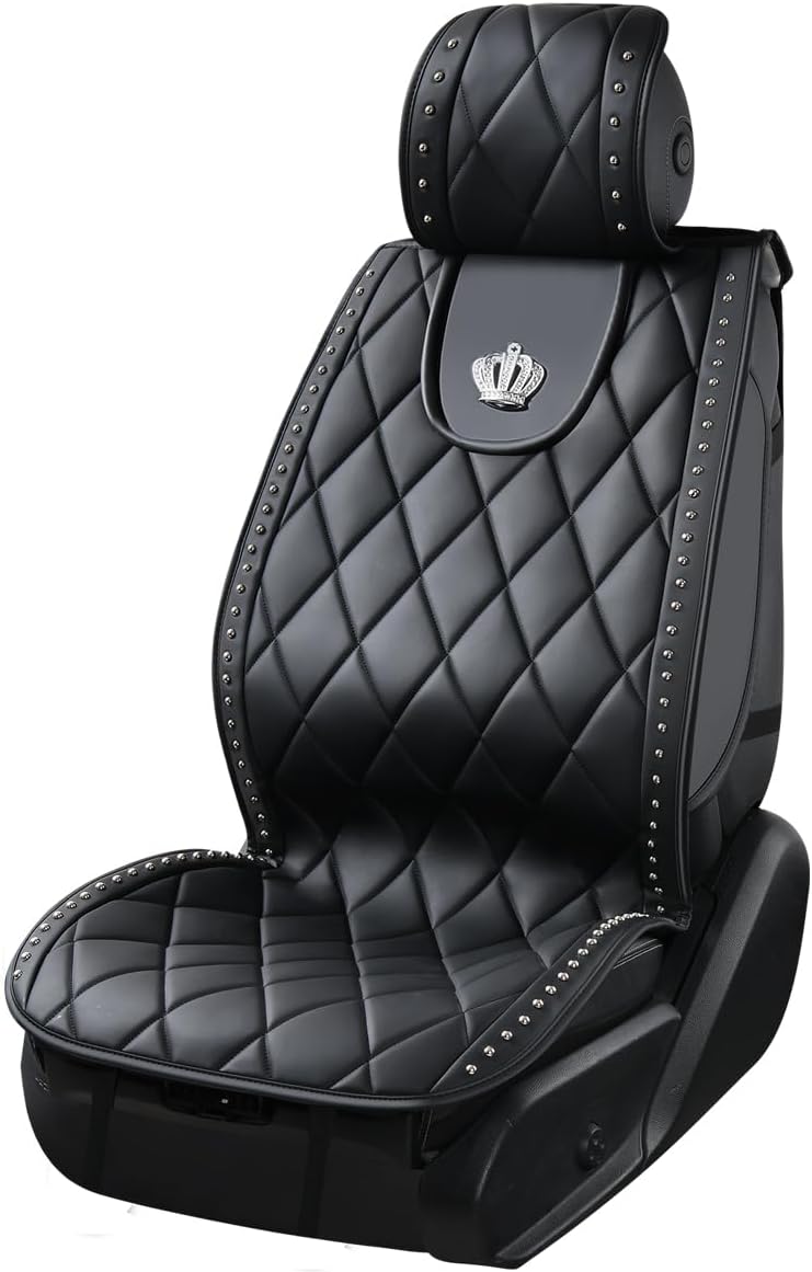 Brand : CARSHAPING Name : Crown Rivet Rhombic Cushion Main Surface Material : Soft Leather Filler: Natural Fiber Natural Fiber Variety: Cotton Suatible Season : Four Season Size : Universal Fit Color : Black Version Selection: Standard Version Features 1. Elegant and stylish, rich in texture, Durable soft leather, durable and Environmentally friendly material 2. Popular diamond crown with metal studs to enhance the interior of the car 3. Allinclusive design, more comprehensive protection seat 4. Luxurious design, leather materials, easy to install, you deserve it